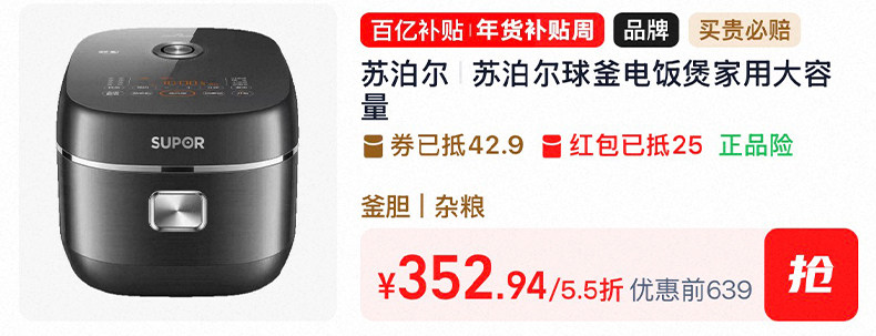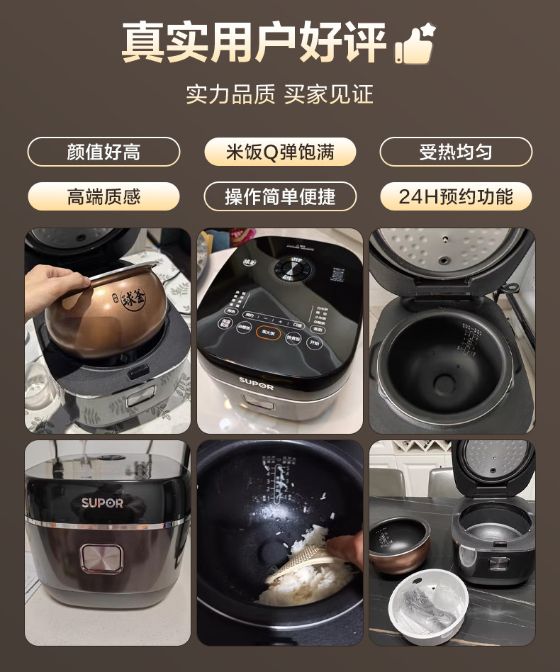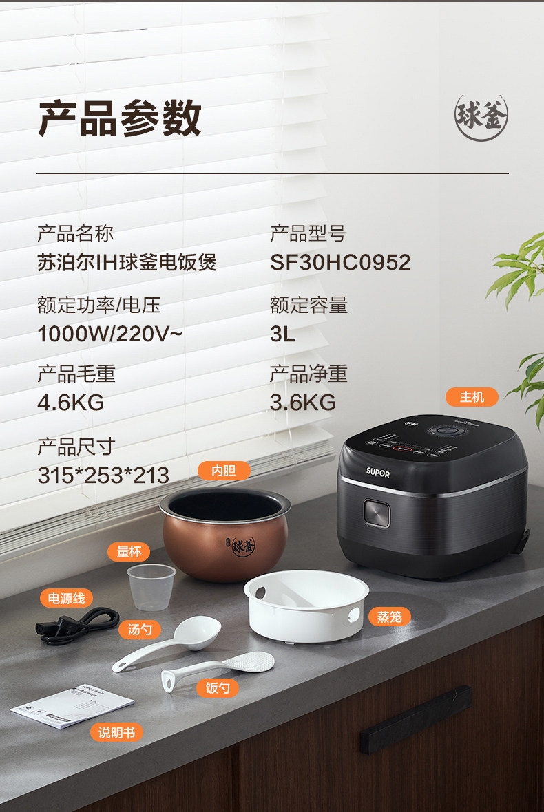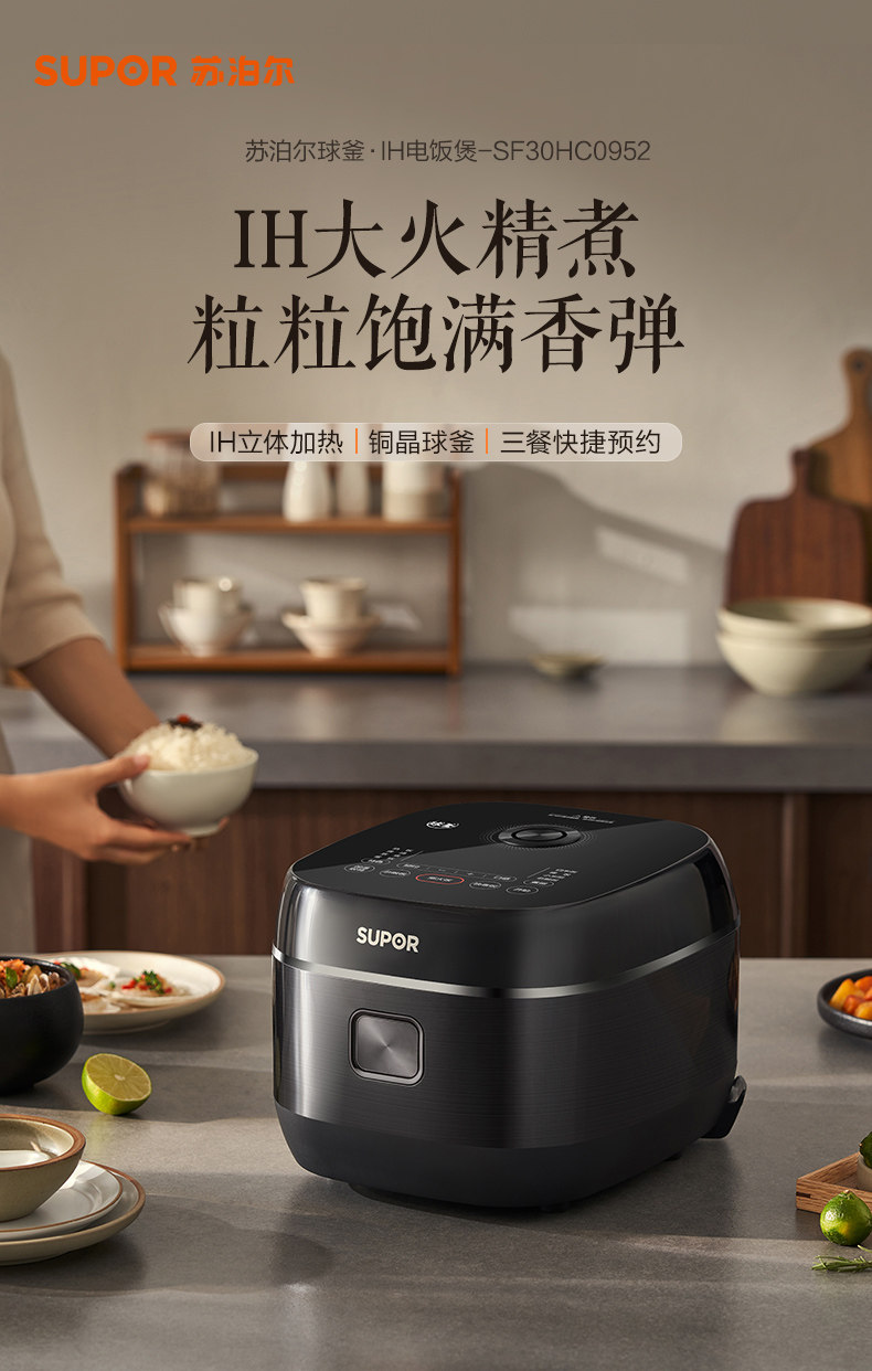 Supor Electric Rice Cooker for Home Use, 3-Liter Ih Ball Kettle Rice Cooker, Multifunctional Smart Wood-Fired Rice Cooker, Official Flagship Store, for 2-4 People