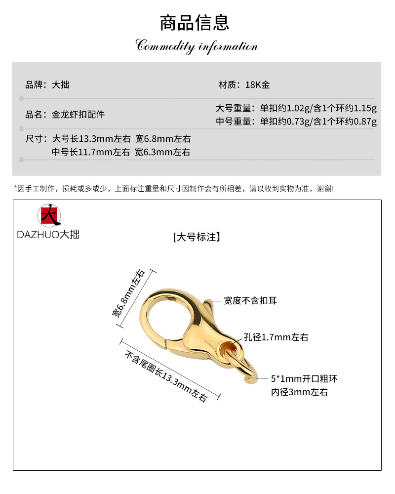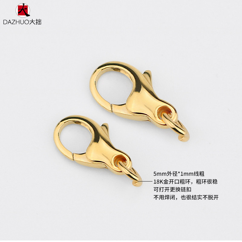 Dazhuo 18K gold buckle head lobster buckle chain connection buckle accessories AU750 pure gold necklace buckle DIY connector