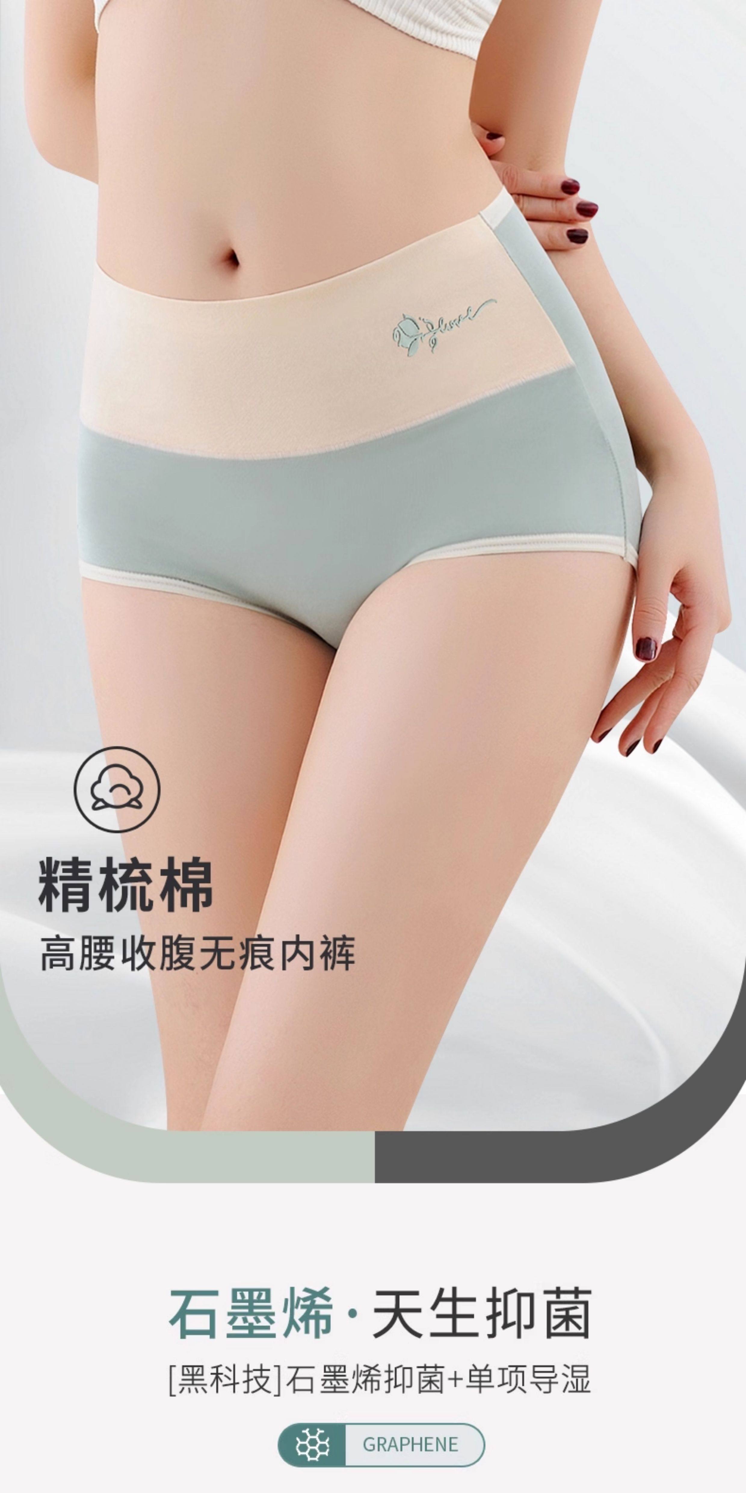 Women's large size summer thin antibacterial crotch underwear, mid-high waist, tummy control, hip lifting, seamless women's triangle shorts