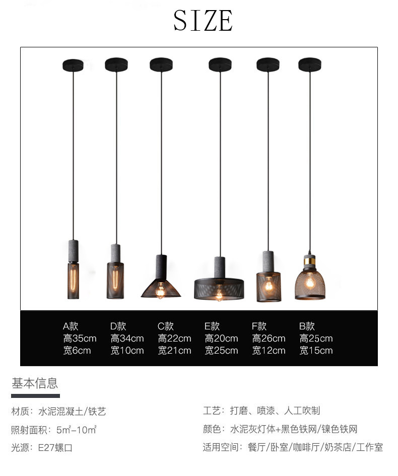 Nordic Restaurant Cement Multi-Head Pendant Light Shop Commercial Single-Head Bar Counter Lamp Retro Industrial Style Creative Bedside Lighting