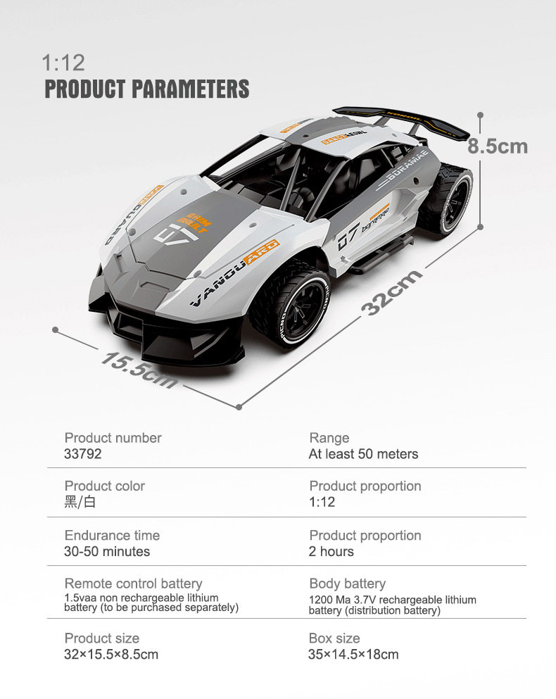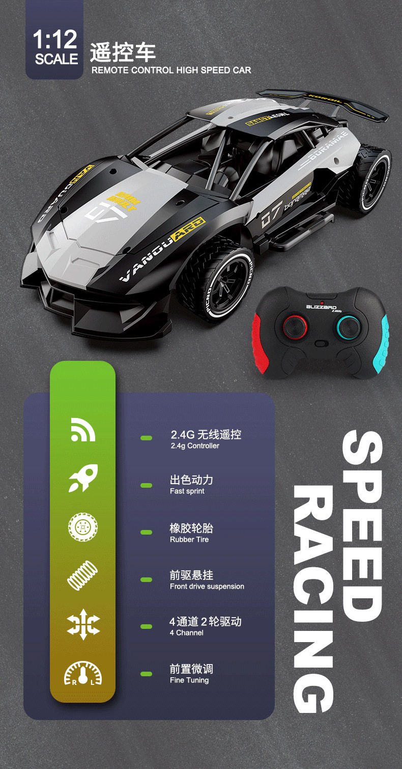 2.4GHz1 12 Large Boy Toy Remote Control Car Handle Remote Control High Speed Drift Racing Children's Car Toy