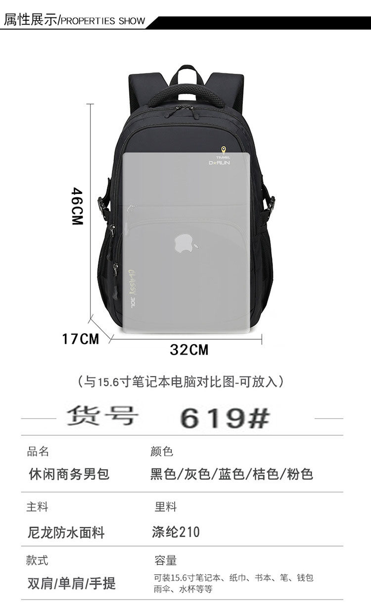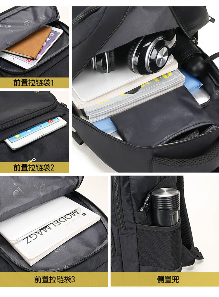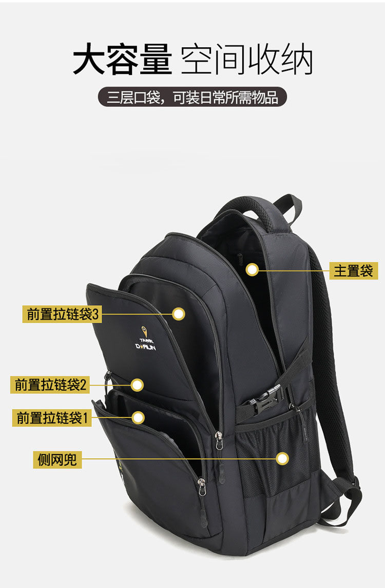 Internal Structure Mesh Bag,Dark Grid,Cell Phone Bag,Certificate Slot,Laminated Zipper Bag,Computer Pocket,Main Bag