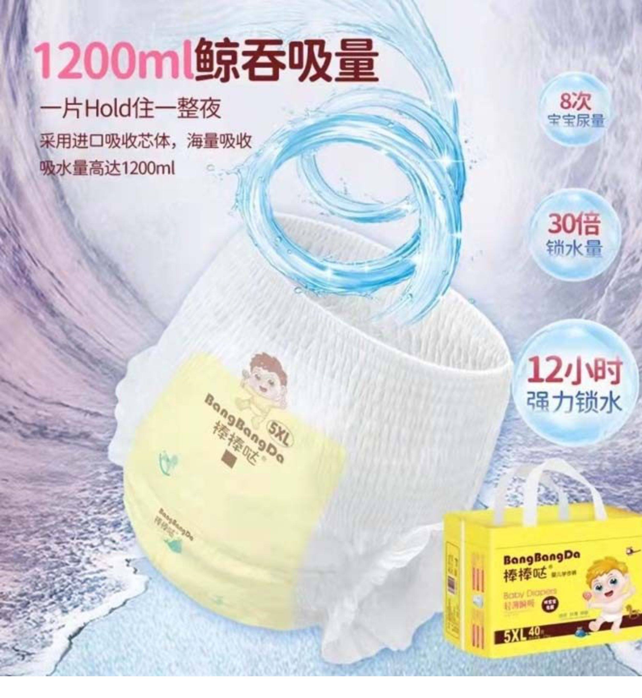 Bangbangda Night-Use Pull-Up Pants 5XL Baby Ultra-Thin 3XL for Chubby Babies 4XL Children's Diapers Extra Large Paper Diapers