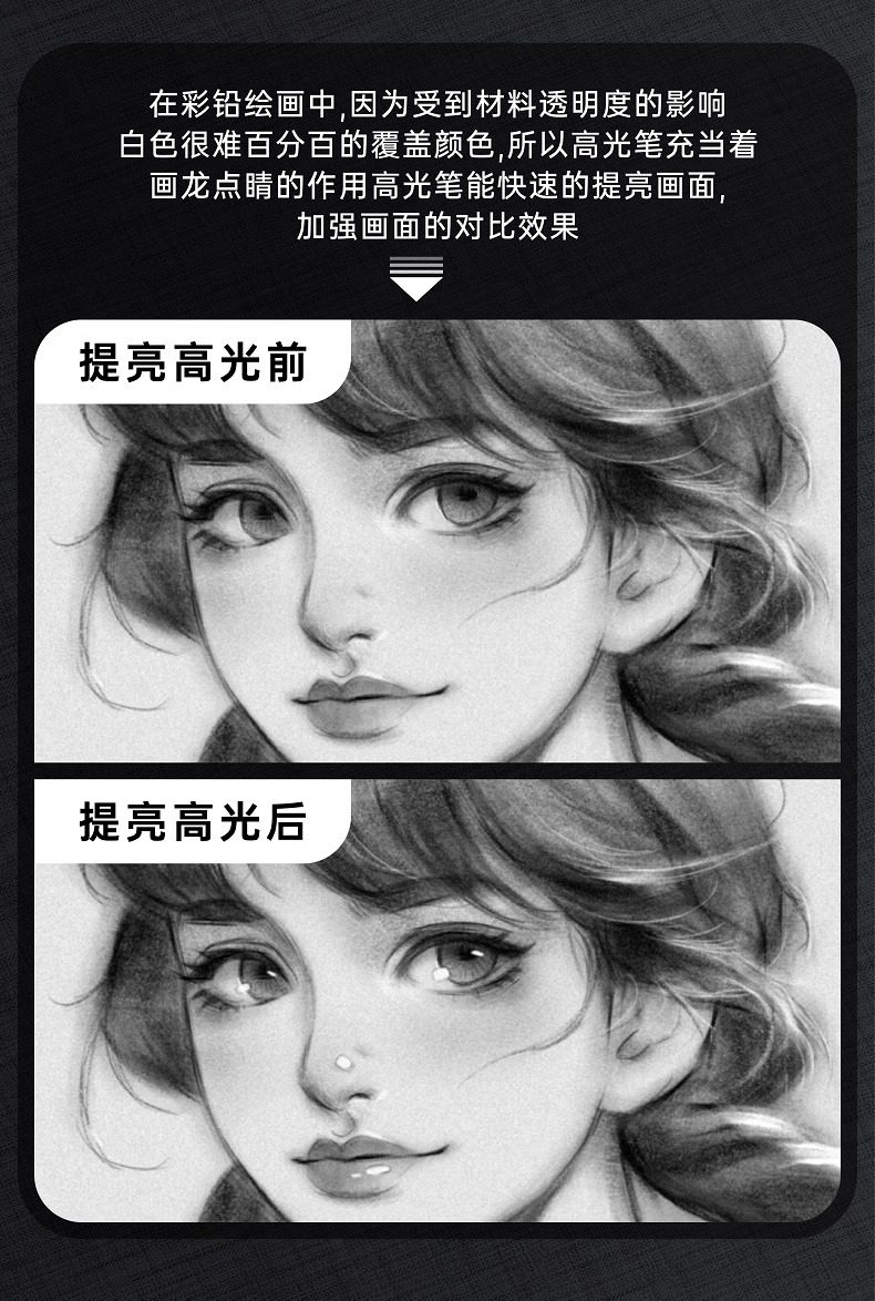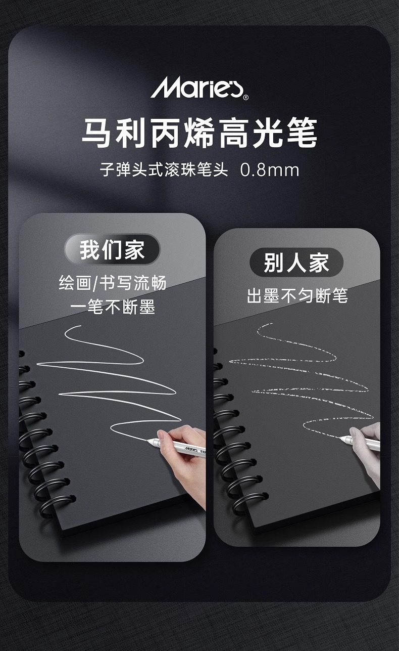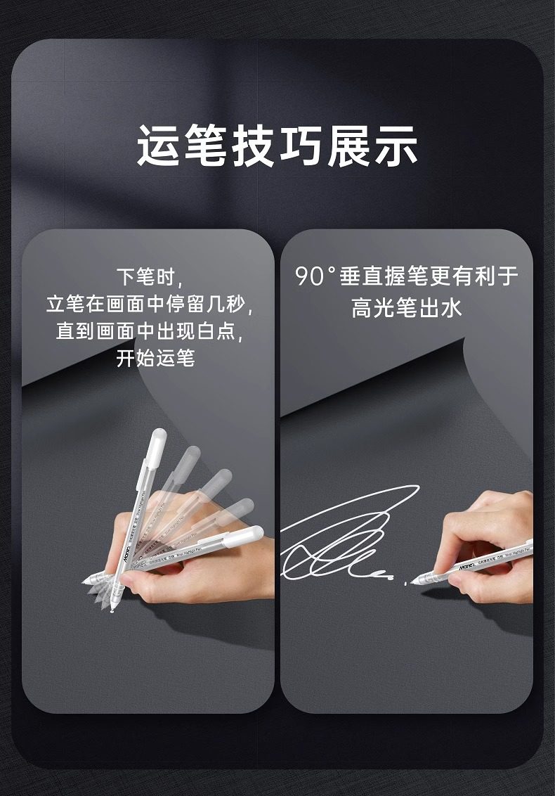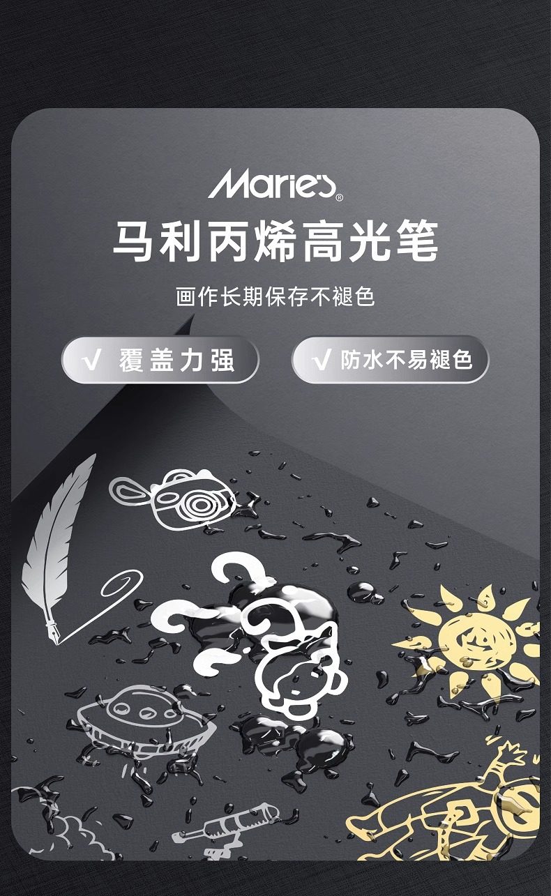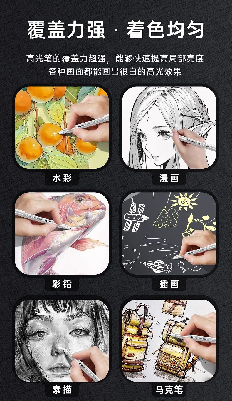 Marley Brand White, Gold, and Silver Highlighter Pens for Art Students, Professional Drawing White Pens, Hand-Drawn Markers, Comics, Elementary and Middle School Students' Sketching, Colored Core, Anime Design, Black Background Writing, White Text, Line Drawing