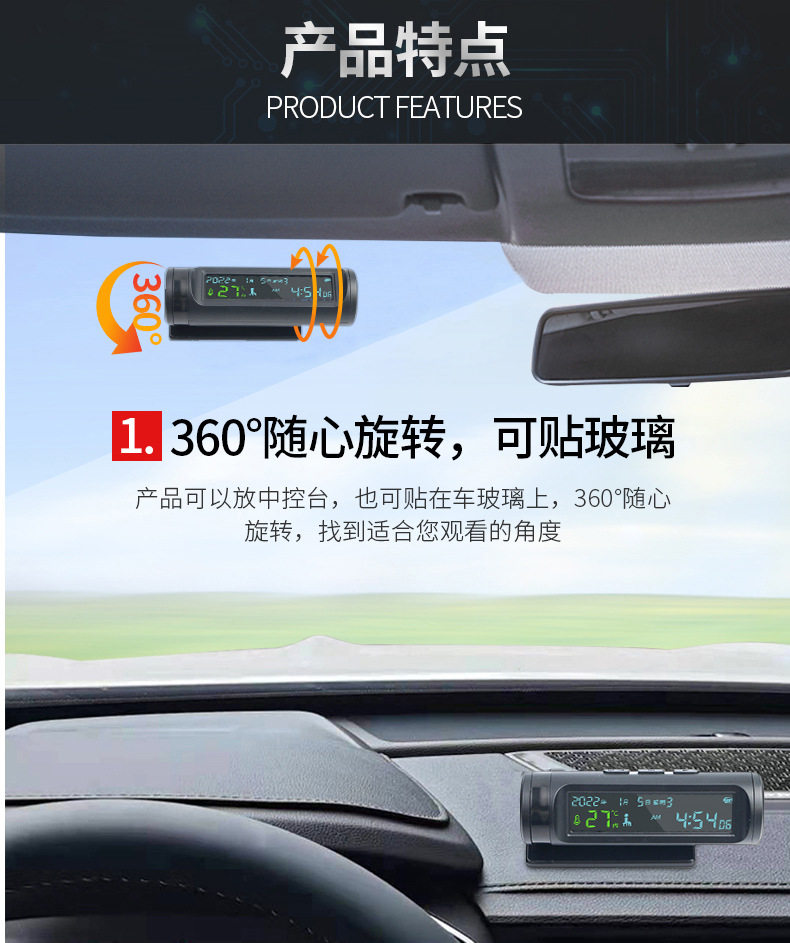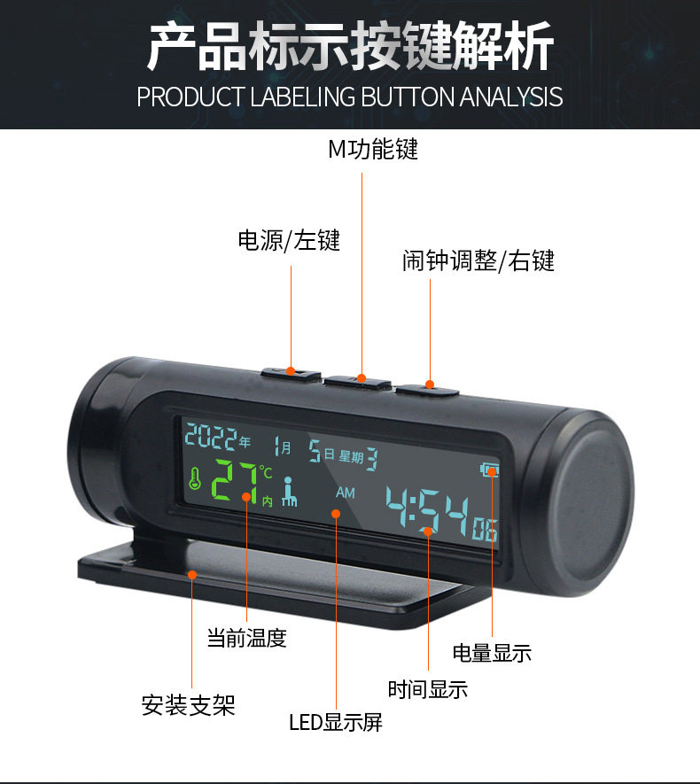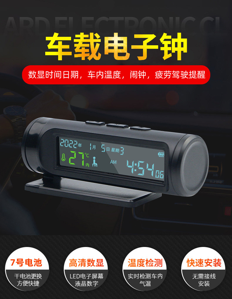 Car-Mounted Multi-Function Time Display Screen, Temperature Alarm Clock, Date and Time Display, Anti-Fatigue Driving Reminder