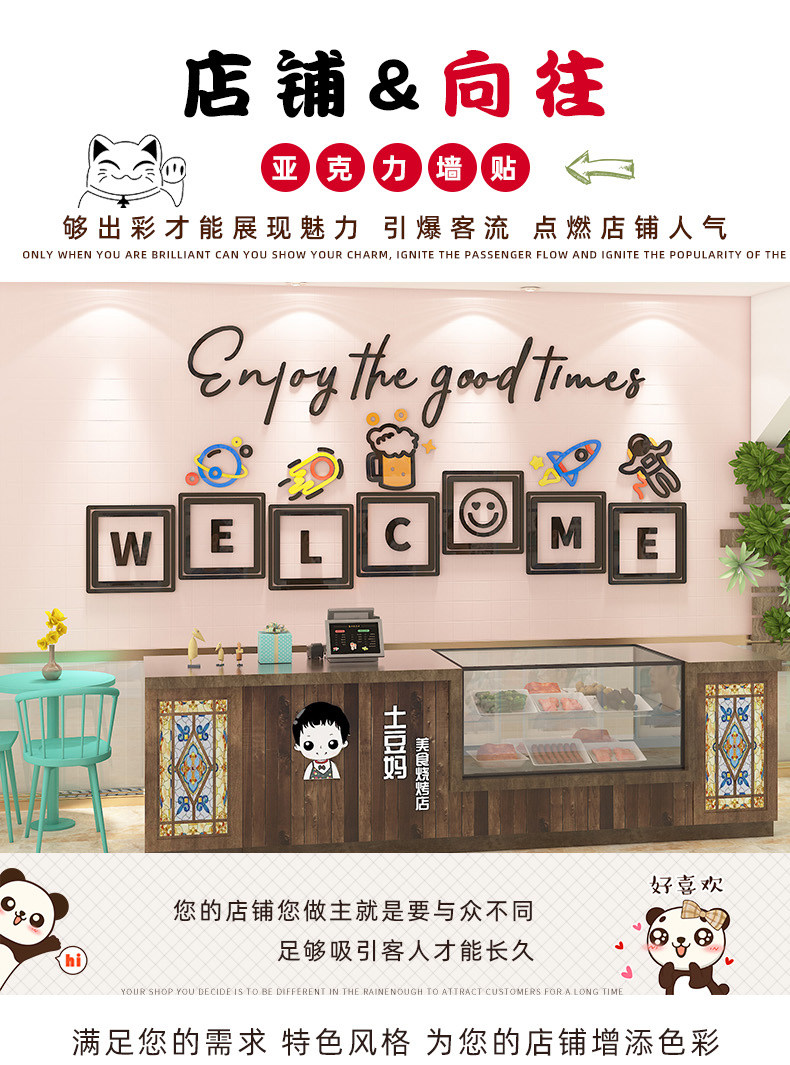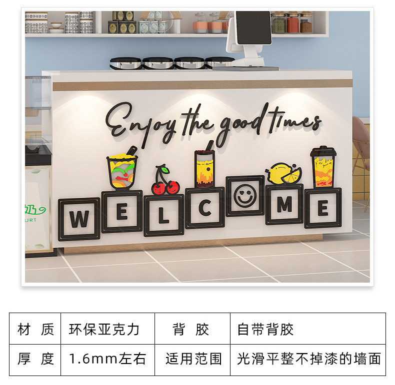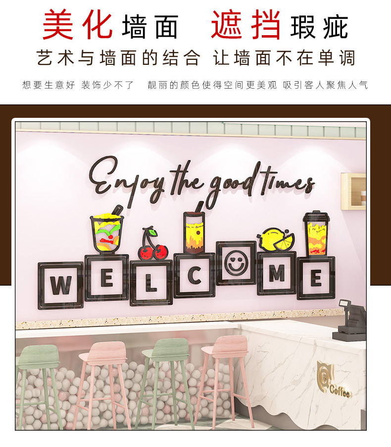 Milk Tea Shop Wall Decoration Bar Counter Cashier Background Wall Stickers Cold Drink Coffee Snack Shop Wall Decoration Creative