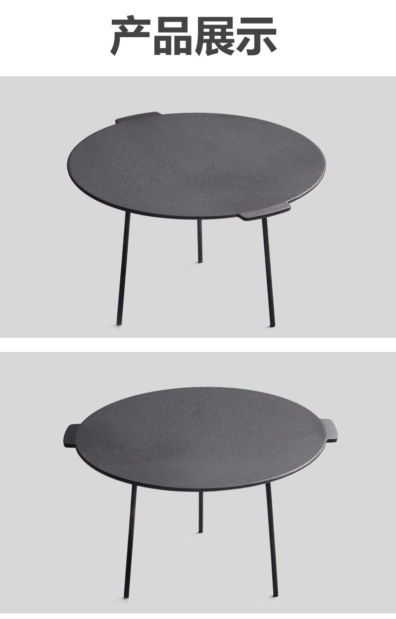 Outdoor Cast Iron Grill Pan Barbecue Iron Plate Non-Stick Camping Bbq Pure Iron Round Plate Uncoated Barbecue Plate Iron Plate Grill Pan