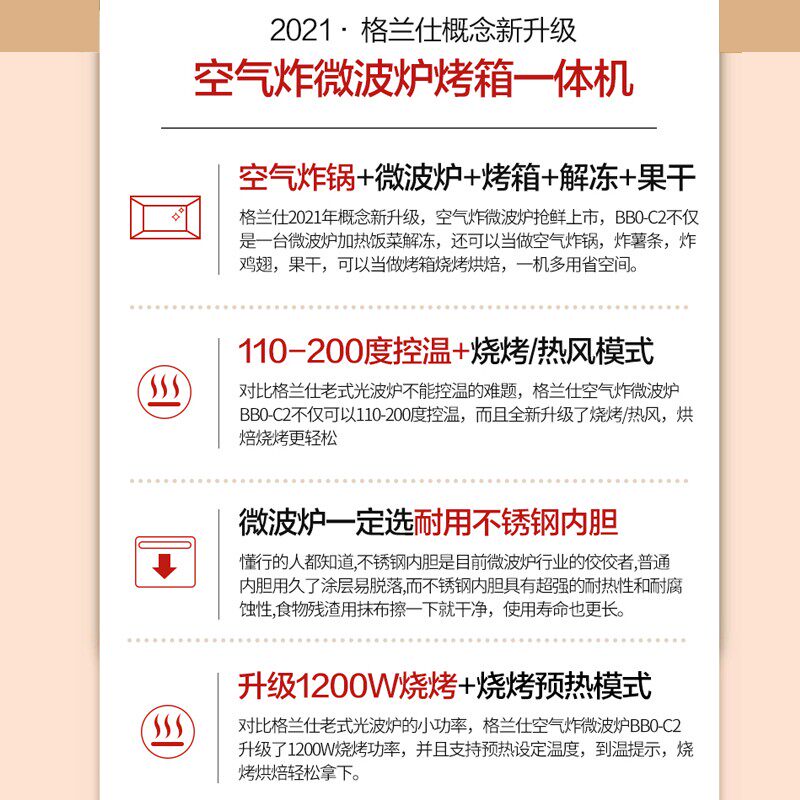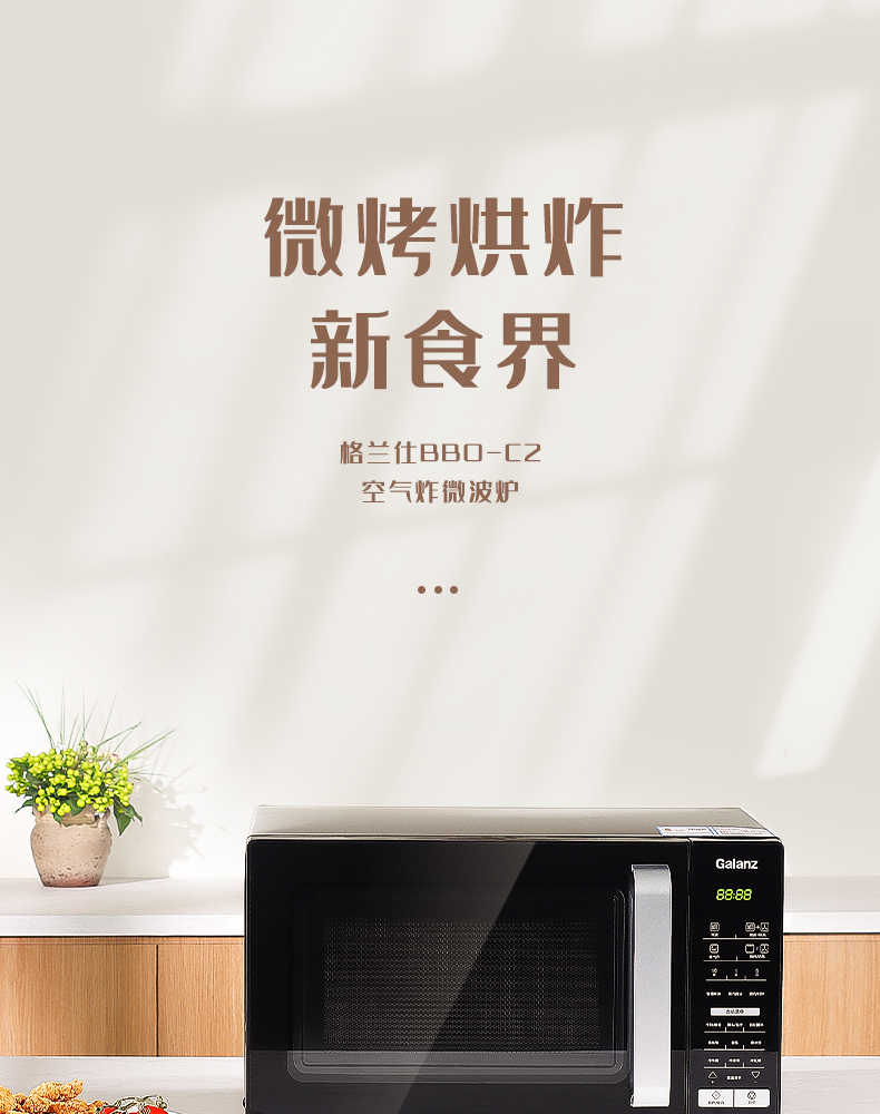 Galanz Microwave Oven and Air Fryer All-In-One Machine for Home Use, 20L Stainless Steel Inner Tank, Small Multifunctional Bb0