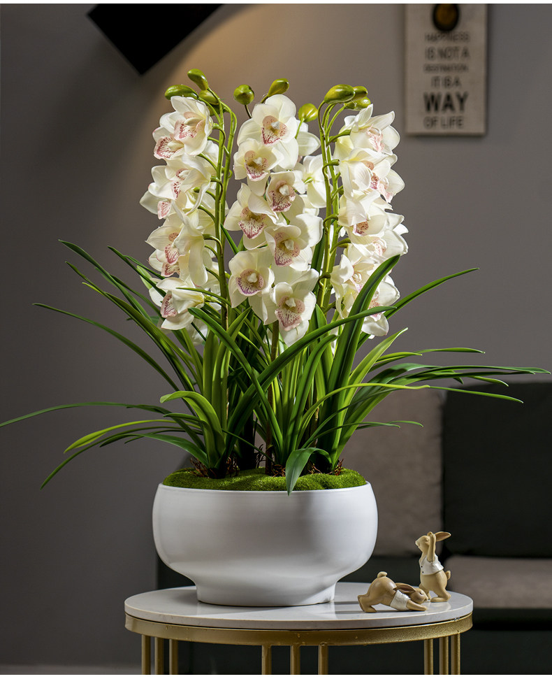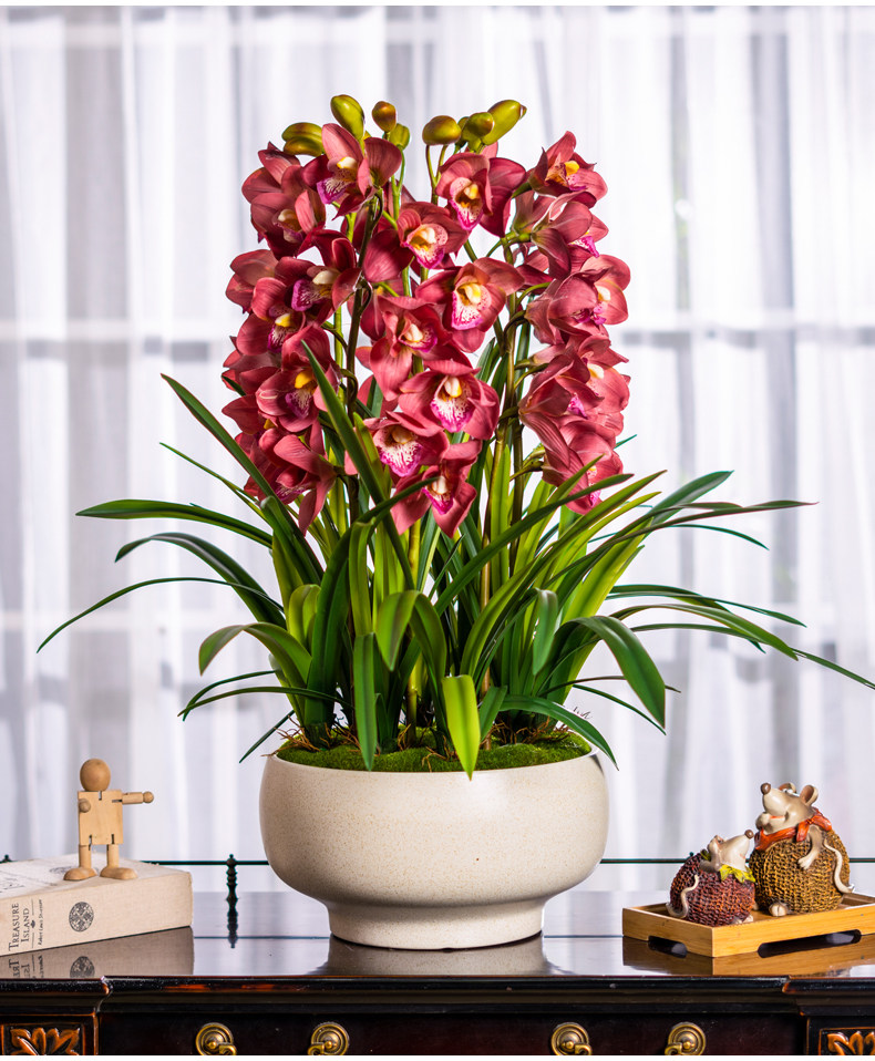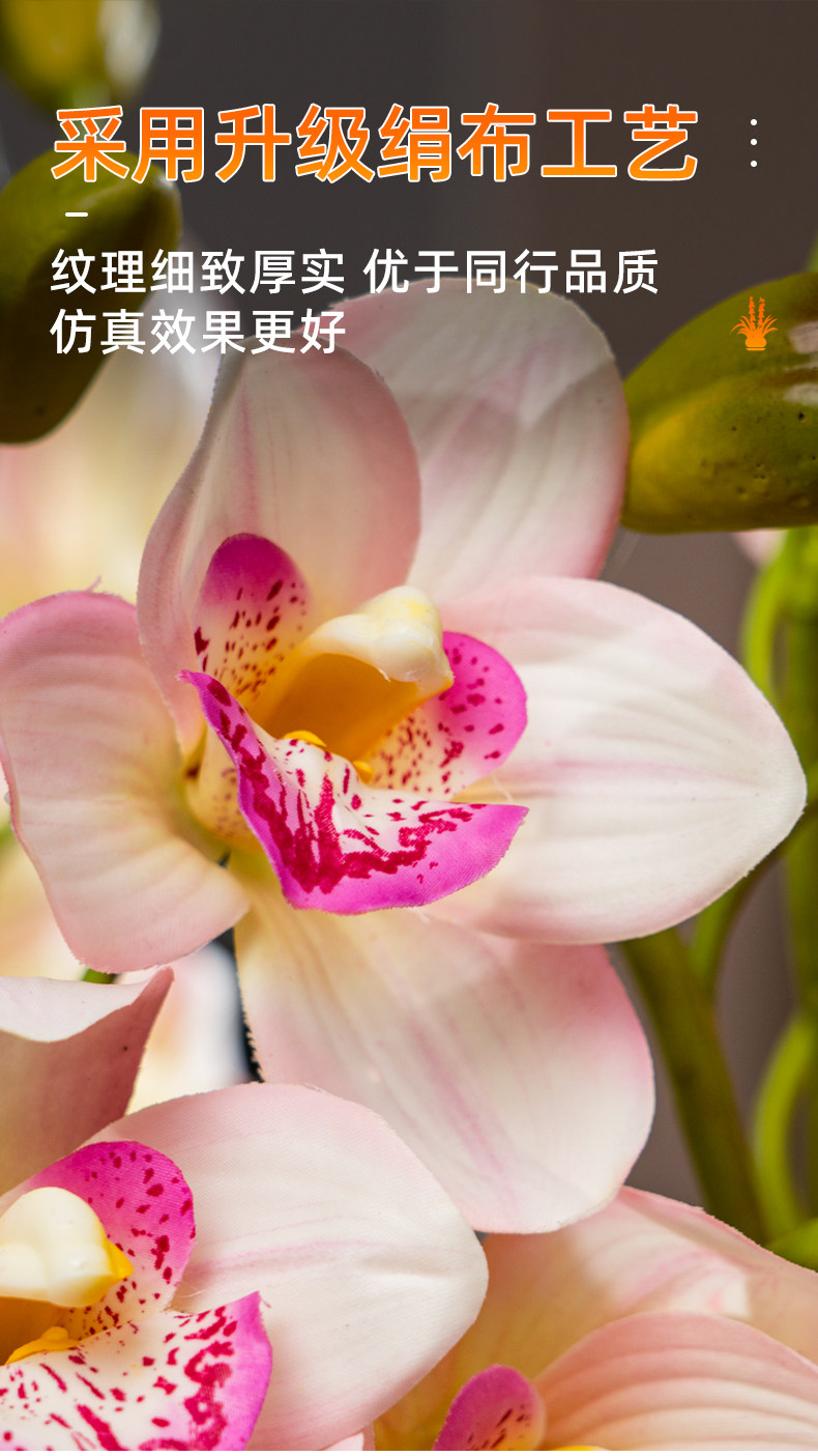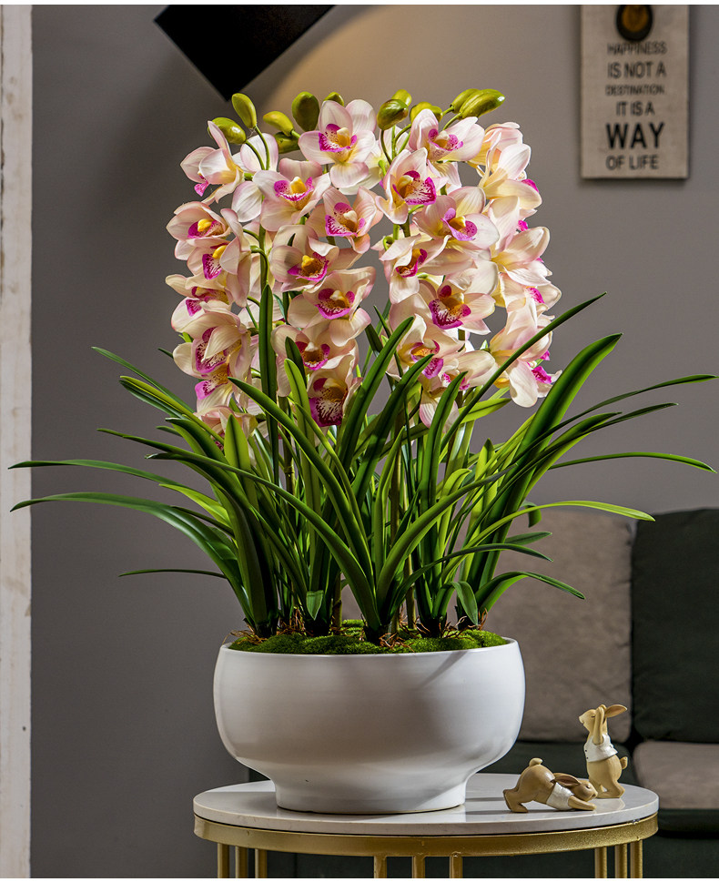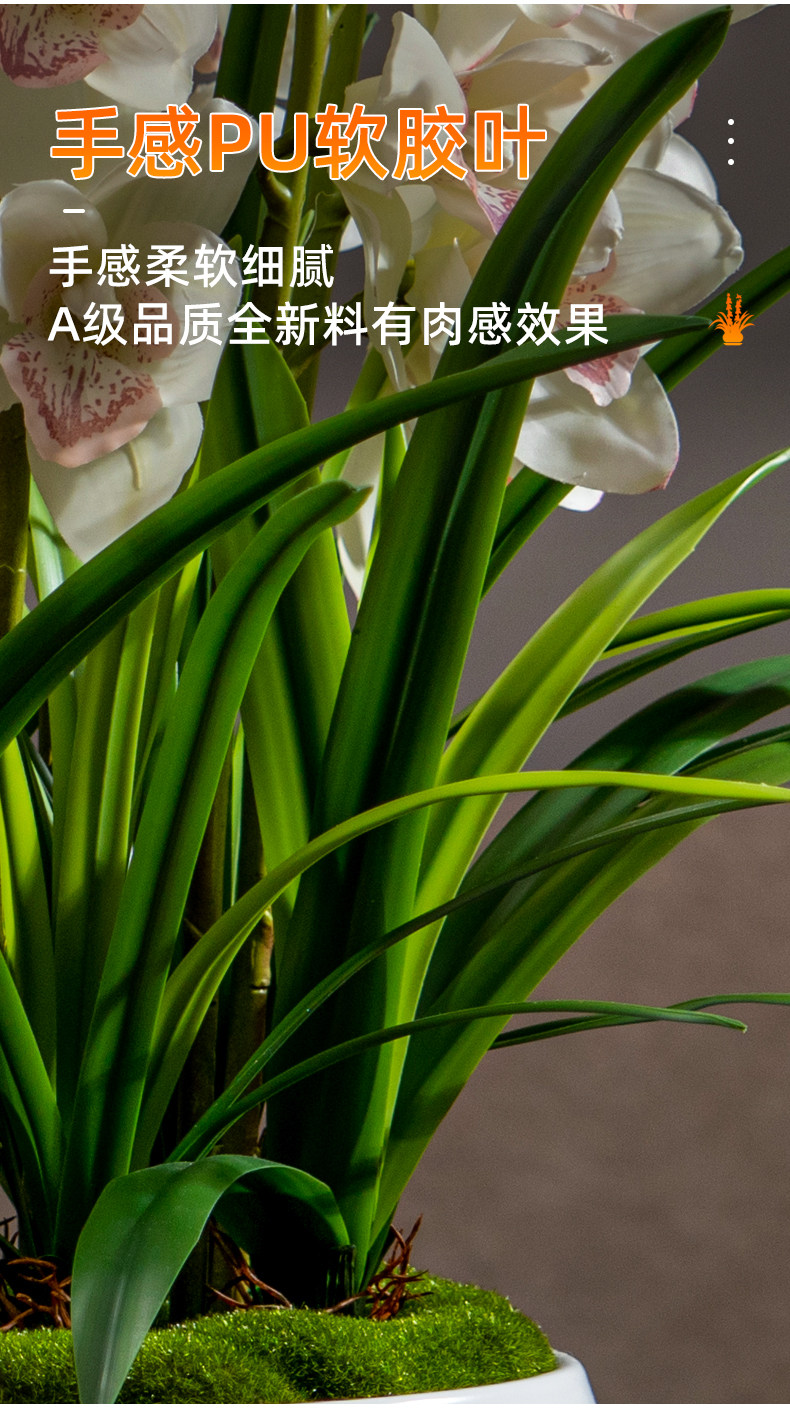 High-end 2026 new simulation feel Cymbidium orchid fake flower decoration plastic flower arrangement living room TV cabinet decoration bonsai
