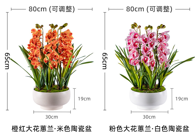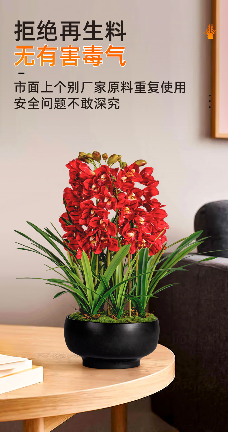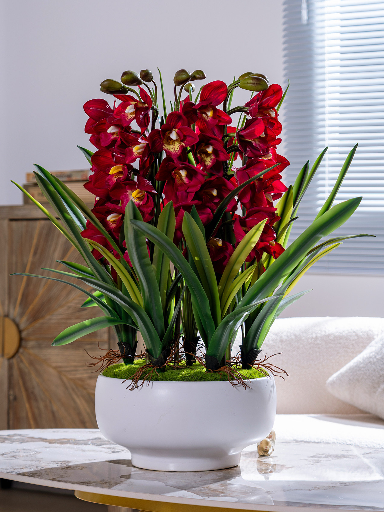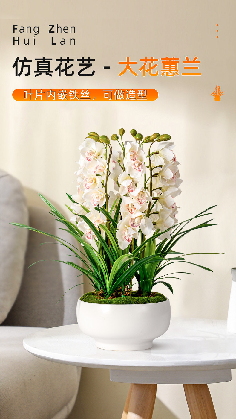 High-end 2026 new simulation feel Cymbidium orchid fake flower decoration plastic flower arrangement living room TV cabinet decoration bonsai
