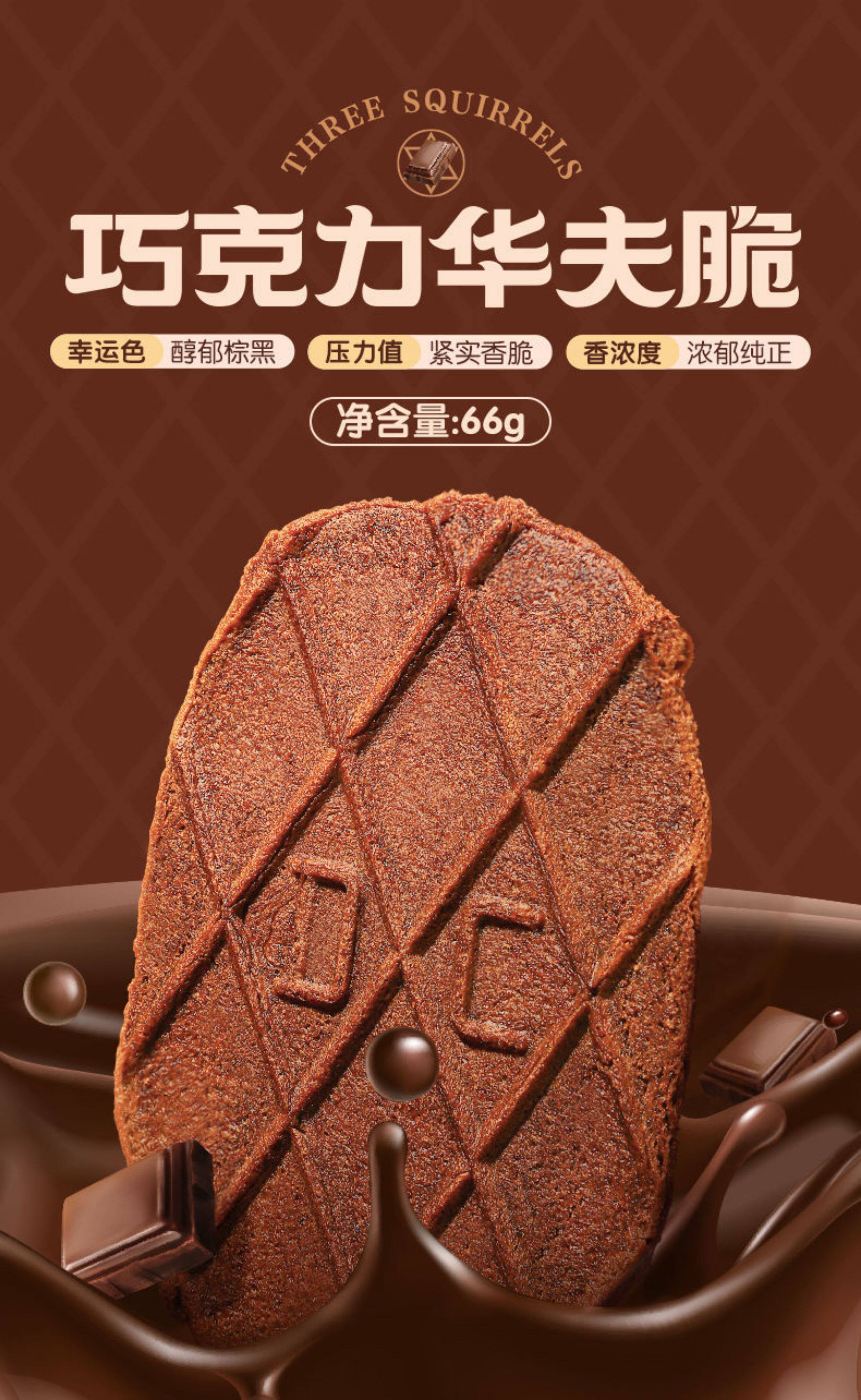 Three Squirrels_Chocolate Waffle Crisps 66g X 4 Boxes]Snacks, Casual Food, Biscuits, Snacks