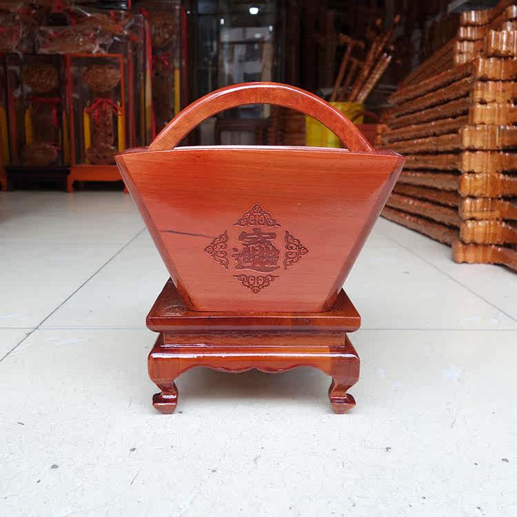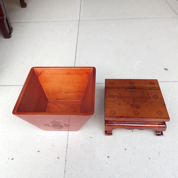 Peach Wood Rice Bucket, Traditional Household Solid Wood Square Rice Container, Housewarming Decoration, Living Room Wedding Decoration, Wealth-Attracting Ornament