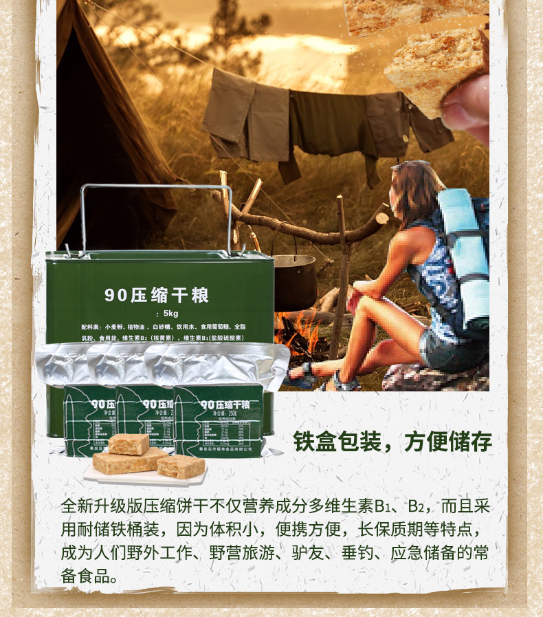 Special Forces 90 Compressed Biscuits Iron Bucket 5kg Pack Original Flavor Outdoor Satiety Dry Food Breakfast Meal Replacement Small Packet Portable