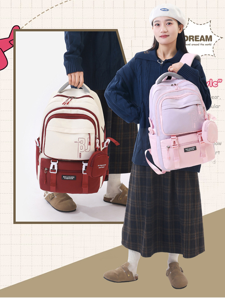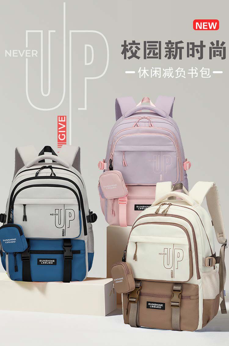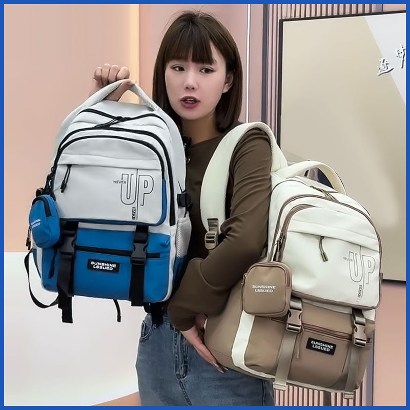 Schoolbags for Female Junior High School Students, College Students, Large-Capacity Middle School Students, High School Students, Waterproof Leisure Travel Backpacks, Dongrun