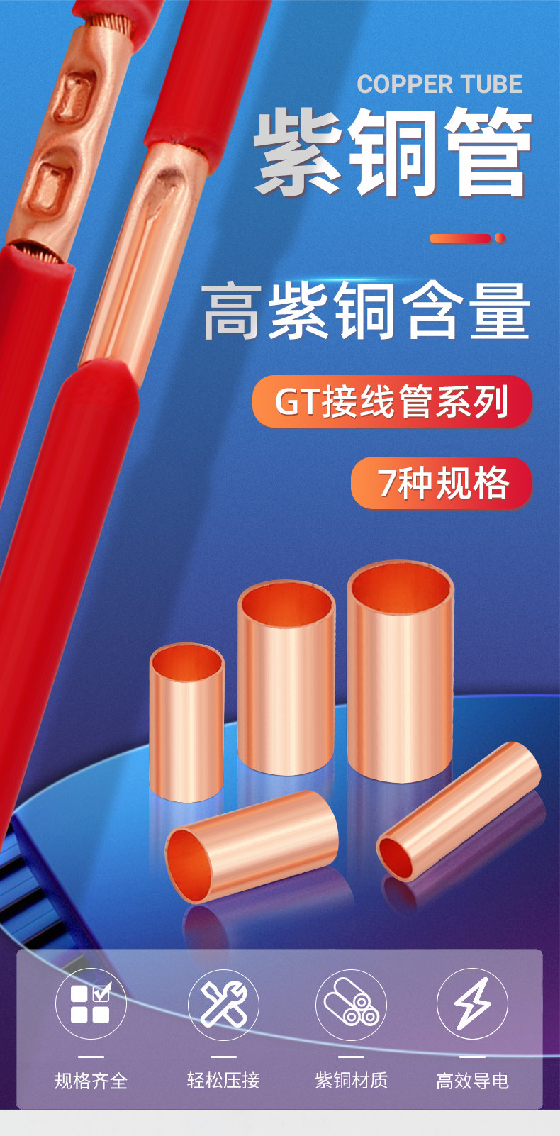 Crimping Copper Tube Wire Connector Terminal Connecting Tube Electrical Wire Connector Quick Connector Gt Copper