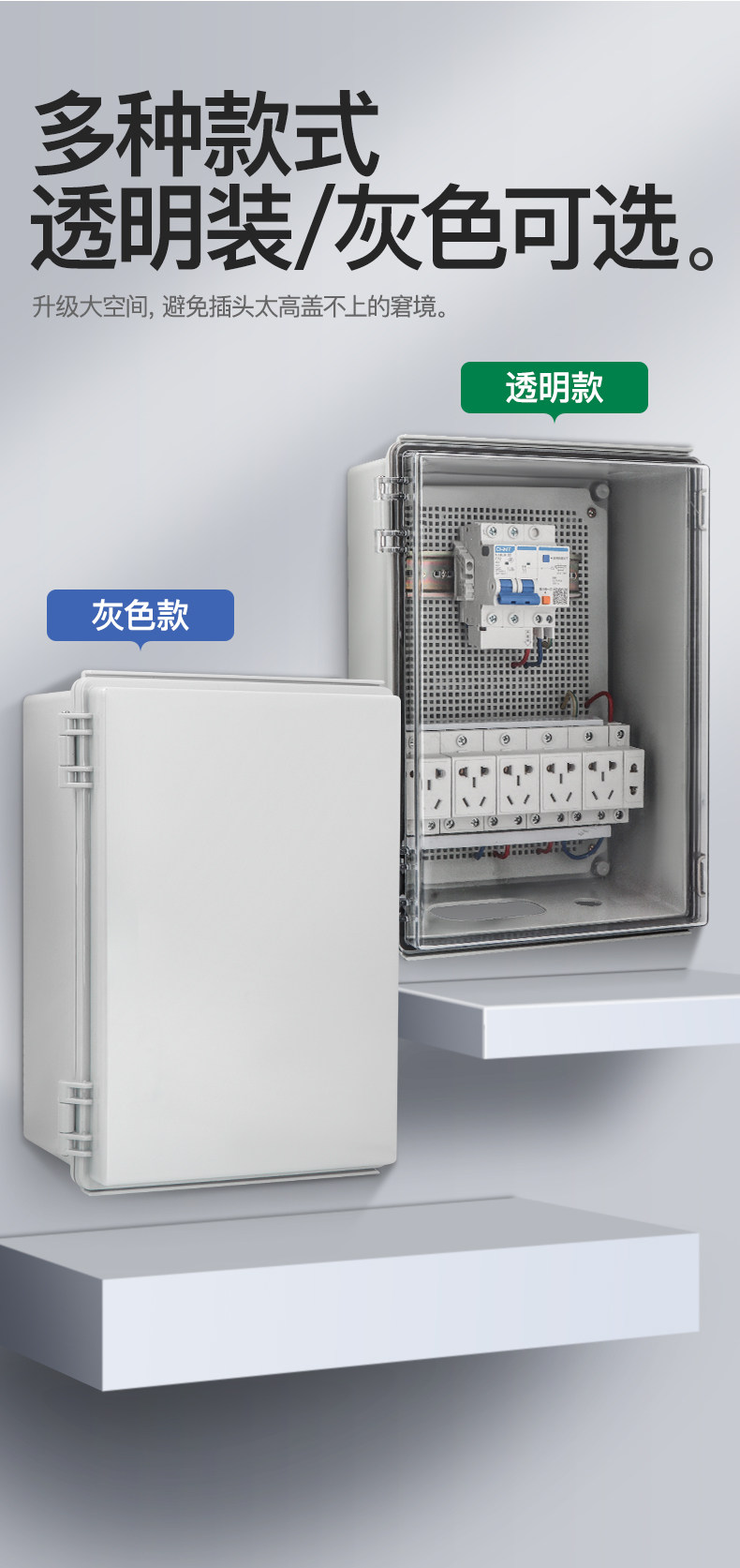 Color Classification Small Square Open Box,Small Square Empty Gray Box,Square Medium Size Hollow Box,Square Medium Gray Empty Box,Large Square Transparent Box,Large Square Gray Empty Box,Extra Large Hollow Box,Extra Large Gray Empty Box,Square Small Size +10 Holes,Square Small Gray +10 Holes,Square Medium Size through +15 Holes,Square Medium Gray +15 Holes,Square Medium Size + Leakage Protection + 10 Holes,Large Square Size + 2P Leakage Protection 32 + 10 Holes,Large Square Size + 2P Leakage Protection 32 + 15 Hole Socket,Large Square Size +2P Leakage Protection 32+21 Holes,Fangda Tou+2P Leakage Protection 32+Time Control+15 Holes,Large Square Size +1Ple32*1+Time Control+Ac 1211,Large Square Gray + Meter 2P Leakage Protection + 15 Holes,Large Square Gray + Remote Control Switch 15 Outlets,Square Large Gray + 15 Hole Leakage Protection Surge,--Split--Extra Large Set-,Extra Large Transparent+2Ple32A*1+5 Holes*5+2 Holes*1,Extra Large Transparent+2Ple32A*1+2P16*1+Time Control+5 Holes*3+2 Holes*2,Extra Large Gray+2Ple32A*1+Undervoltage+Electric Meter+5 Holes*4+2 Holes*2,Extra Large Gray+2Ple32A*1+Time Control*2+86 Socket*2,Extra Large Gray+2Ple32A*1+Time Control+Remote Control+5 Holes*5,Extra Large Gray+2Ple32A*12 Holes*4+5 Holes*4,Extra Large Gray+Time Control*1+Ac 1211*1