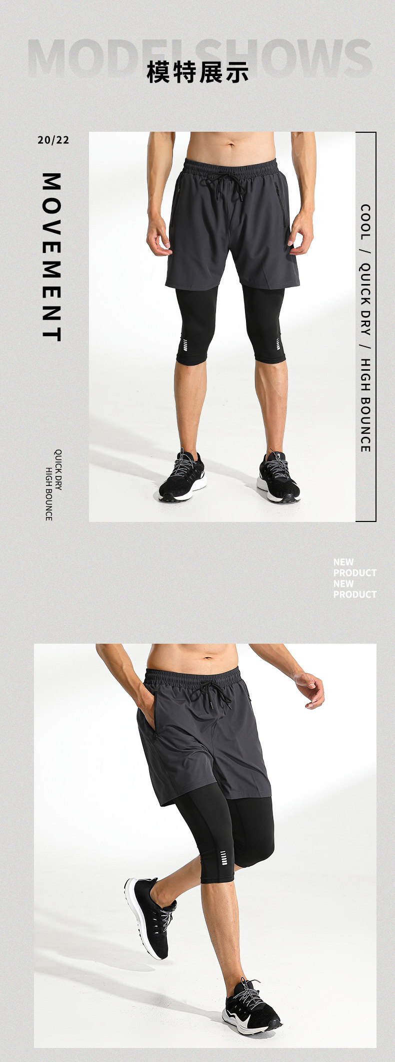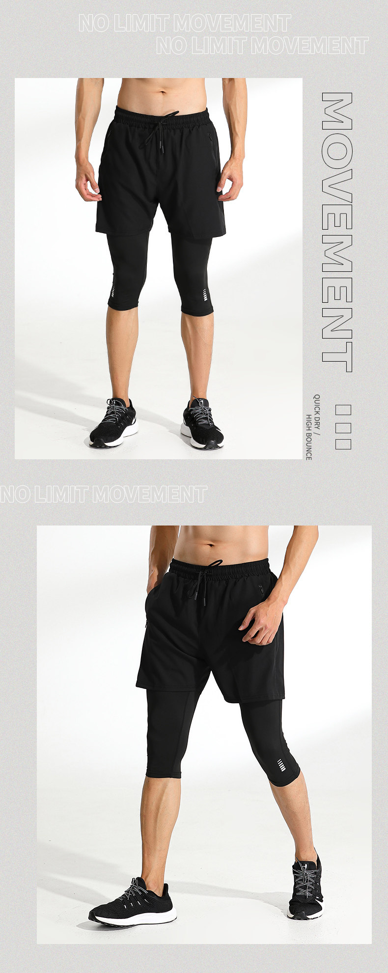 Fake Two-Piece Basketball Shorts Men's Sports Shorts Set Ice Silk Quick-Drying Summer Fitness High-Elastic Training Tight-Fitting Three-Quarter Pants