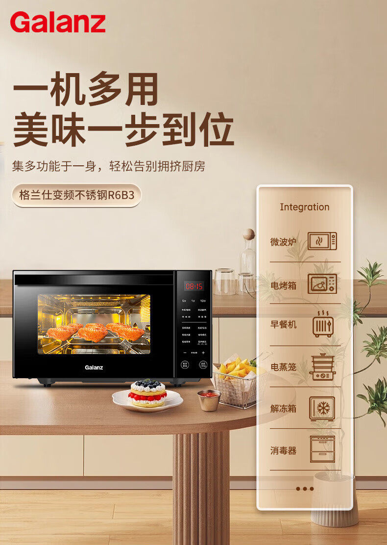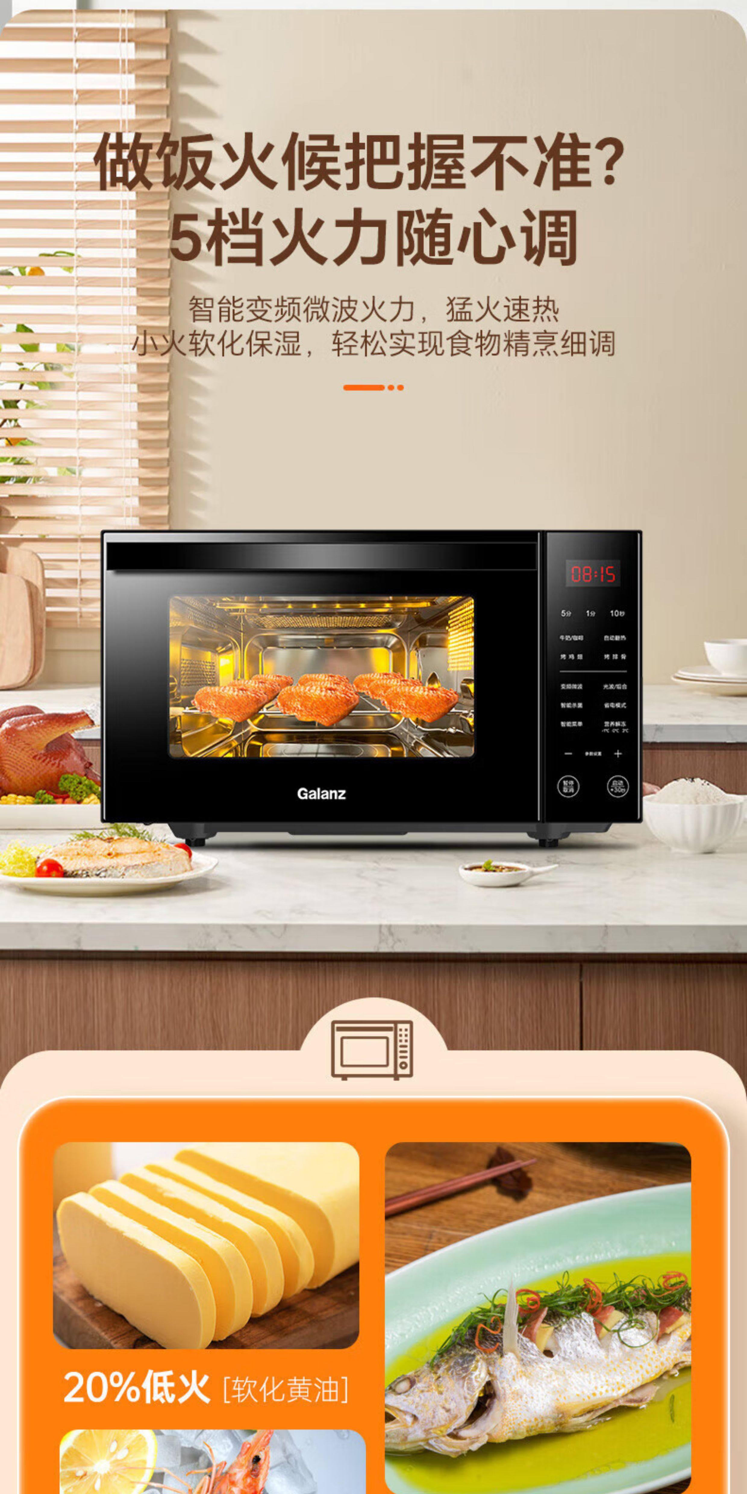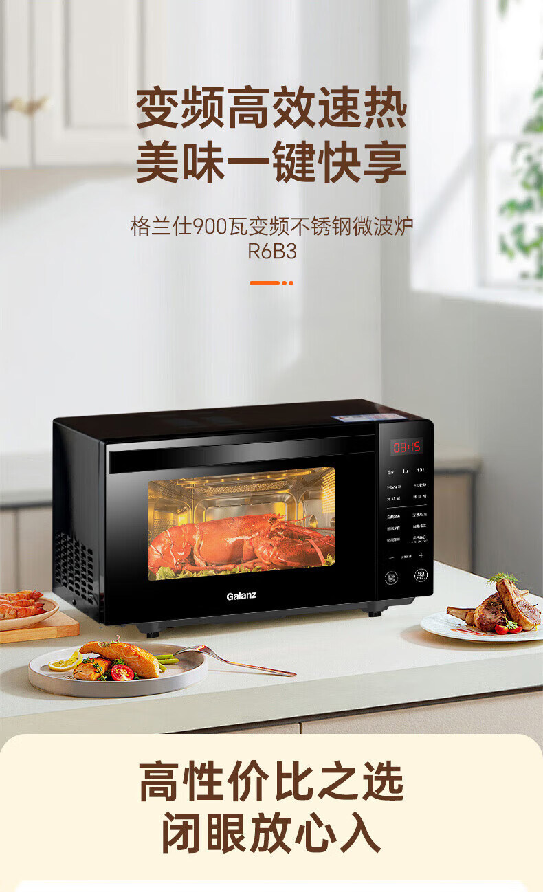 Galanz Household Stainless Steel Microwave Oven 900W Oven Integrated 23-Liter Large Capacity Flat-Panel Light Wave Oven R6B3