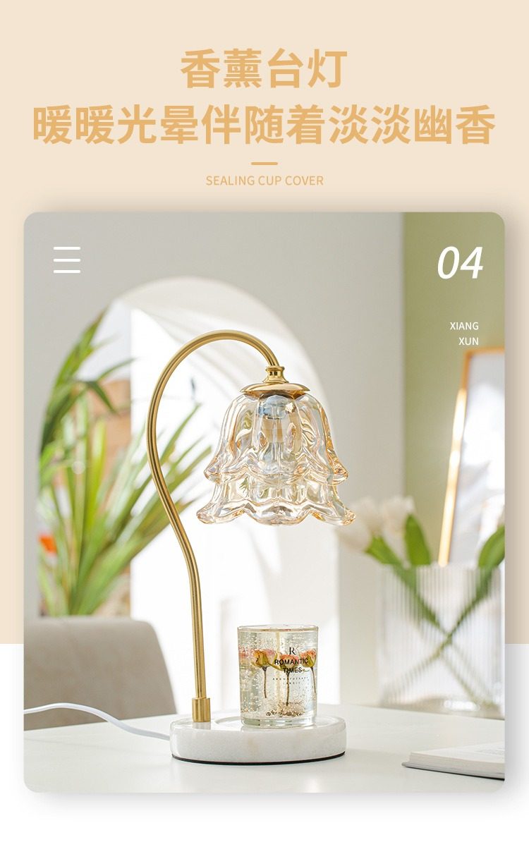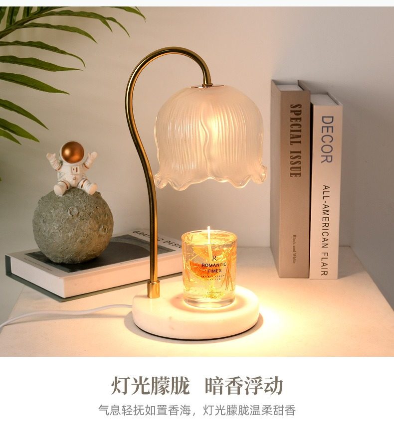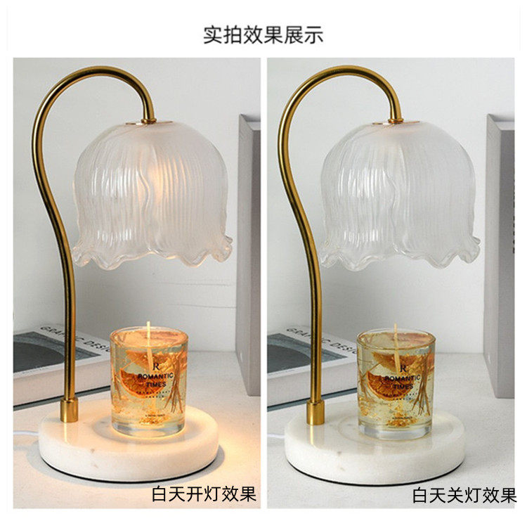 Lily of the Valley Scented Wax Melting Lamp, Timed Marble Melting Candle Lamp, ins Flowers Bedside Flameless Sleep Aid Candle Table Lamp Night Light
