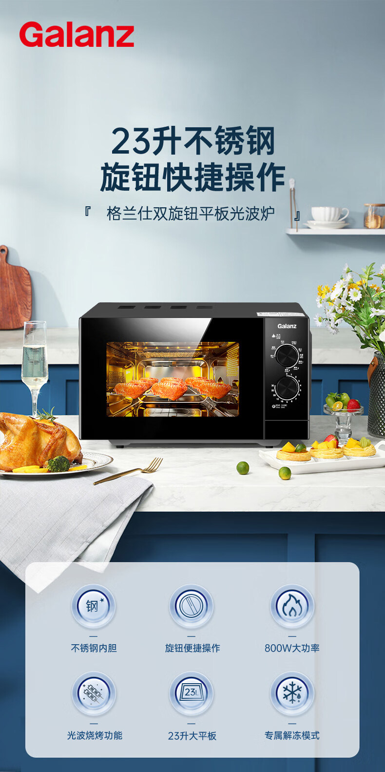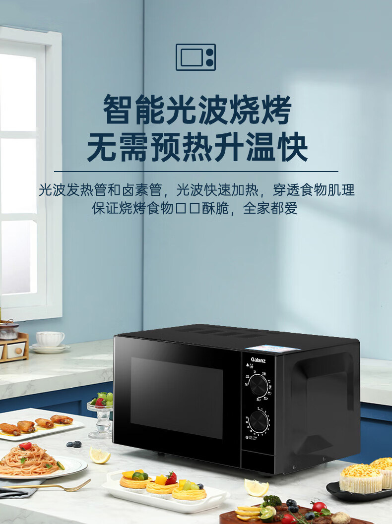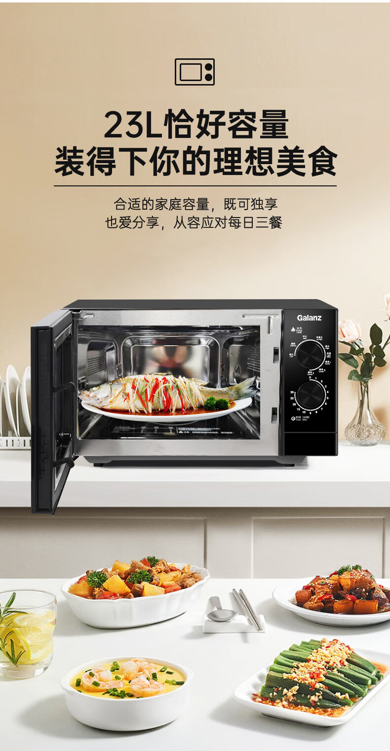 Galanz Microwave Oven with Stainless Steel Inner Tank, 23-Liter Household Mechanical Lightwave Oven, Micro-Steaming and Baking All-In-One Appliance, Genuine Product