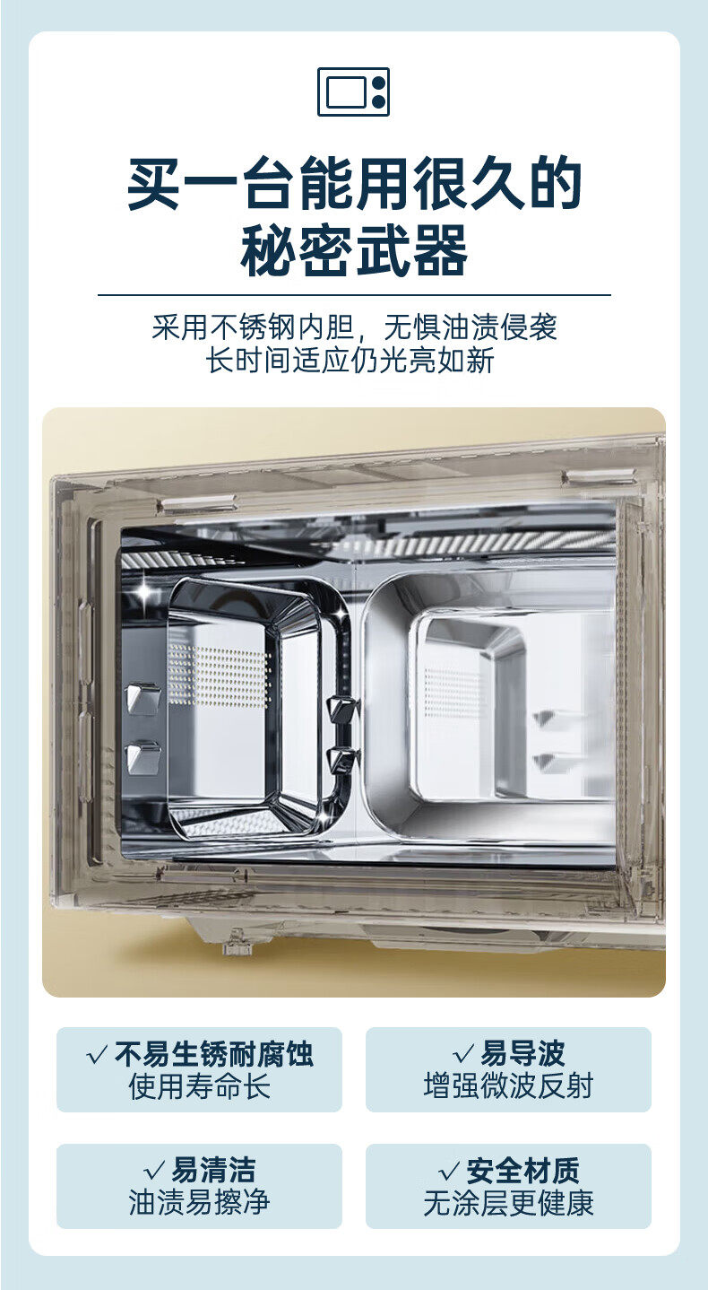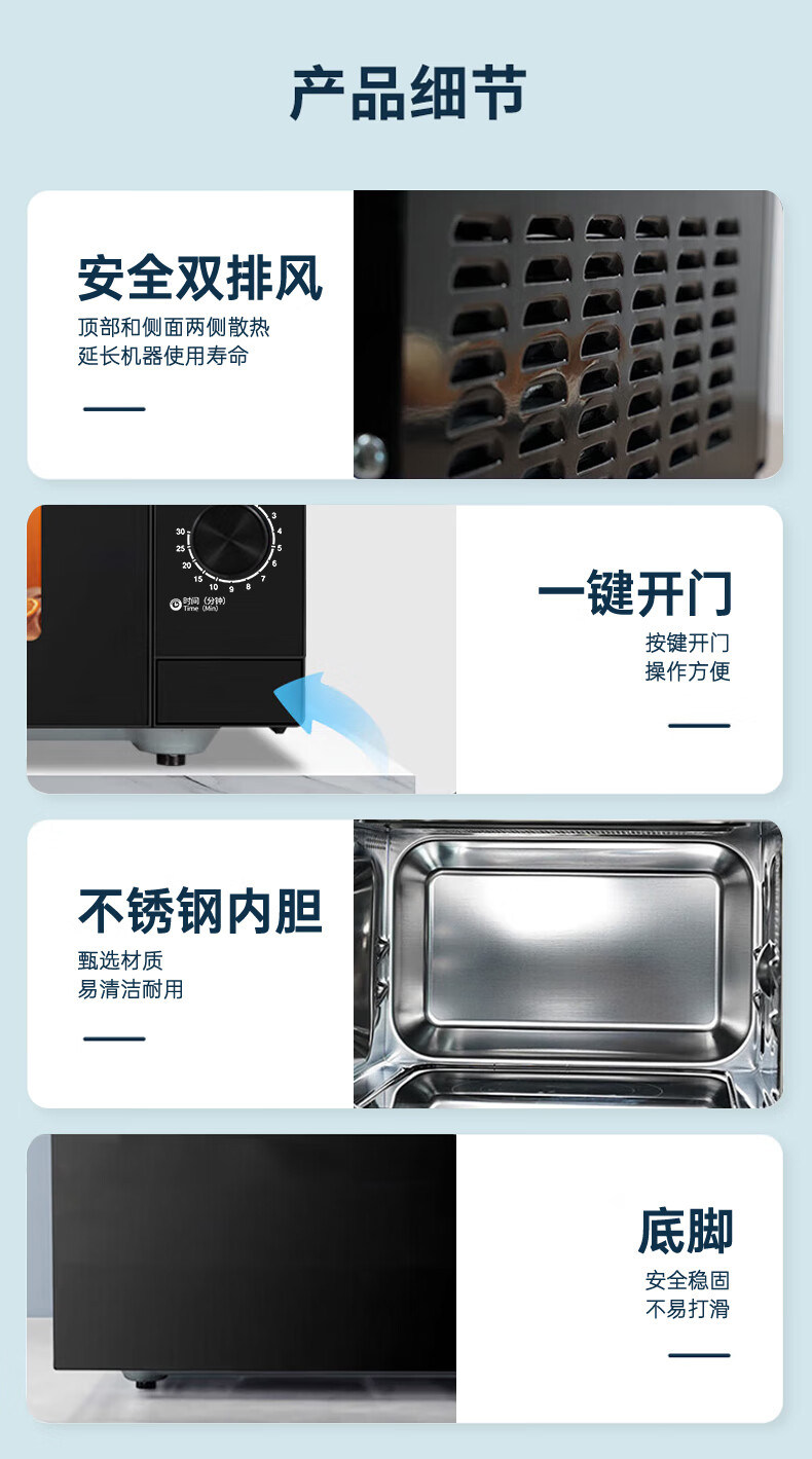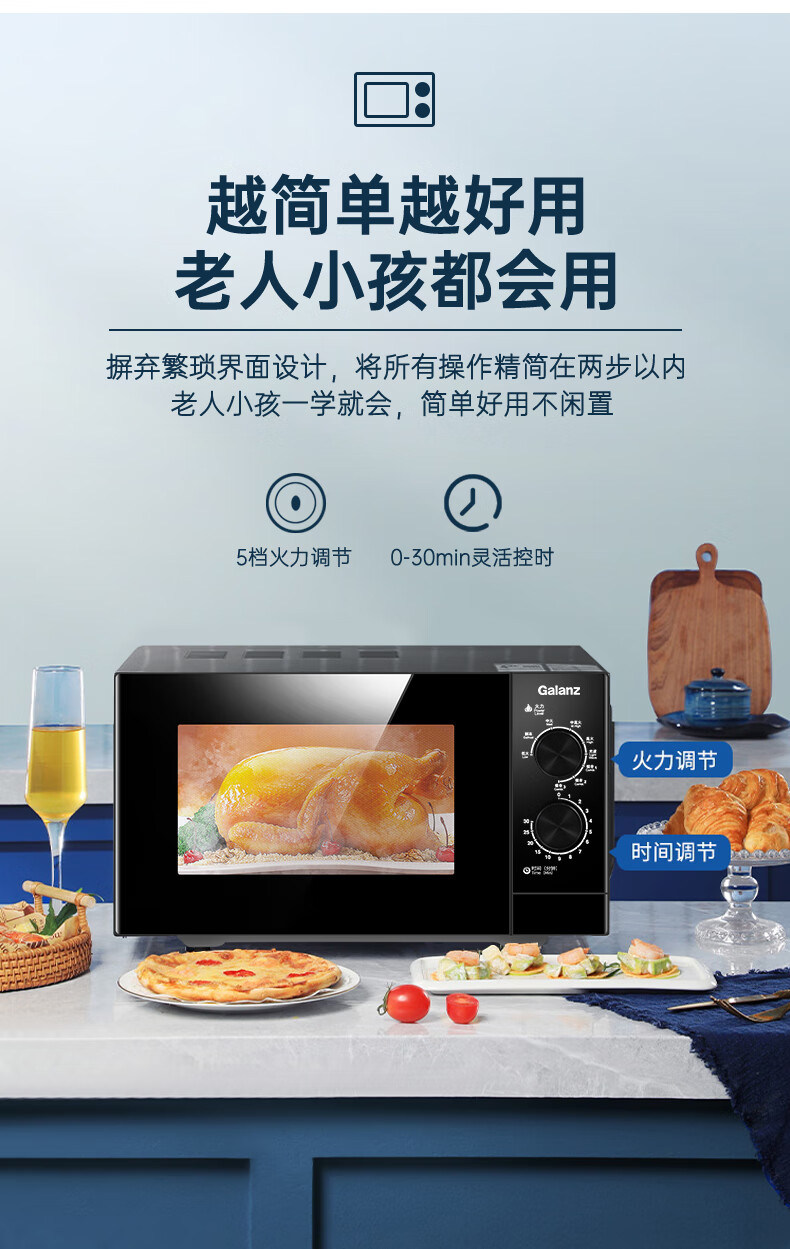 Galanz Microwave Oven with Stainless Steel Inner Tank, 23-Liter Household Mechanical Lightwave Oven, Micro-Steaming and Baking All-In-One Appliance, Genuine Product