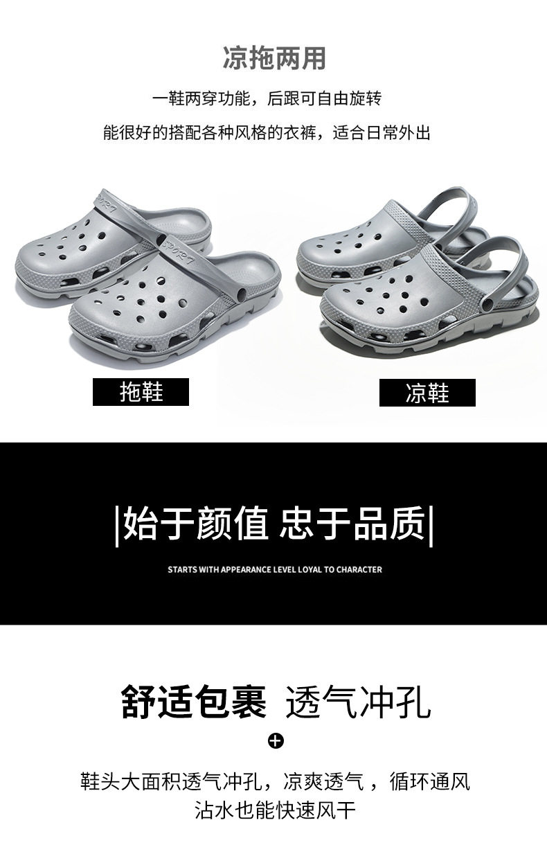 Croc shoes men's summer toe-toe slippers men's non-slip thin garden shoes outer wear dual-use driving beach sandals men