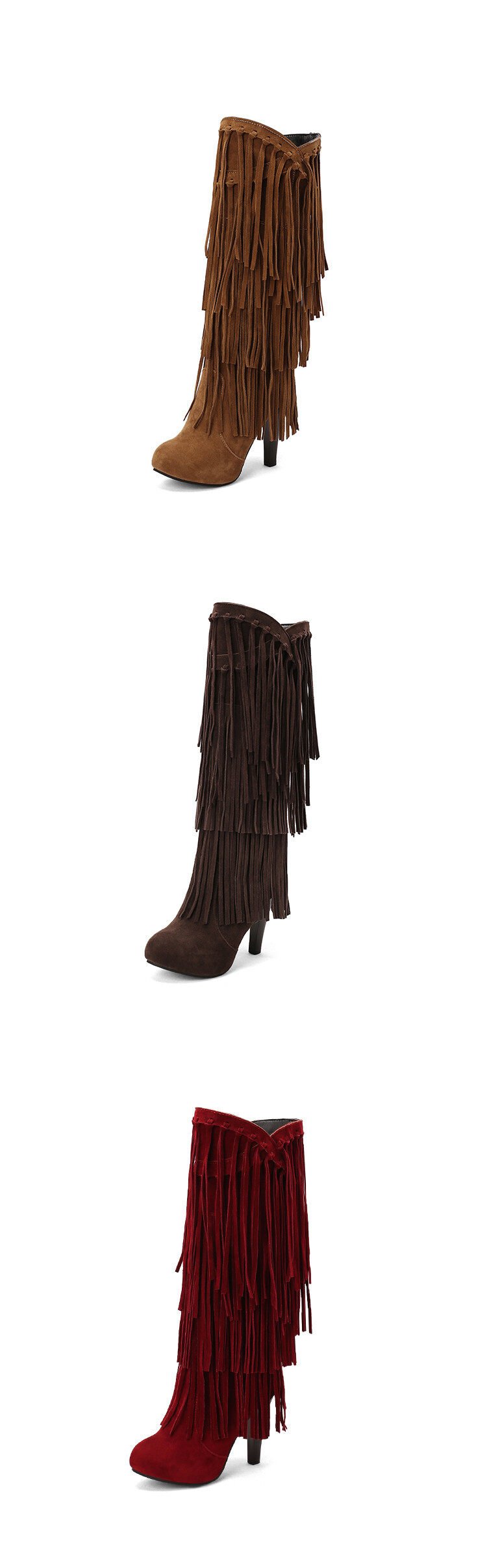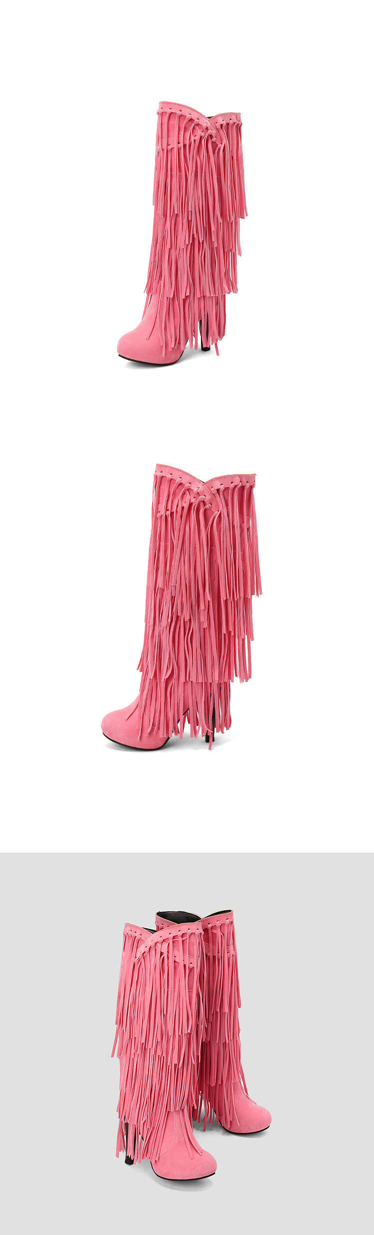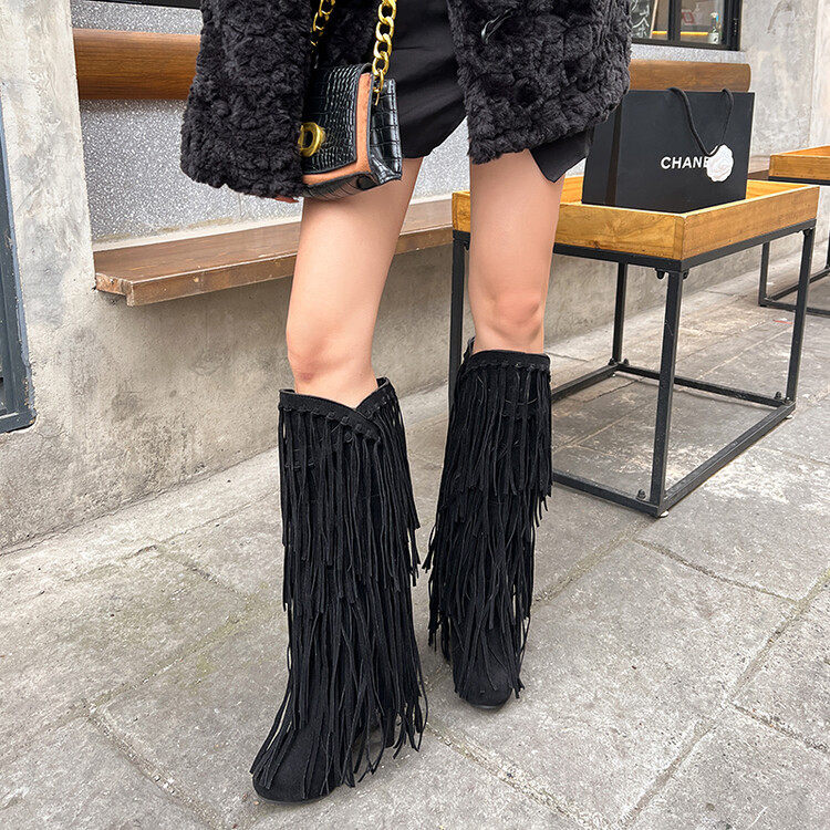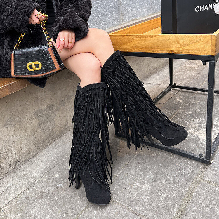Independent Foreign Trade European and American Style Large Size High-Heeled Tassel Boots Women's Riding Boots Round Toe Performance Catwalk Fashion Boots