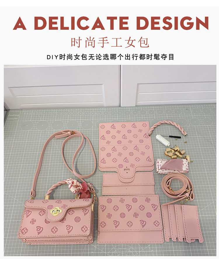 New DIY Small Square Bag, Hand-Woven Bag, Cherry Blossom Bag Material Kit, Hand-Sewn, LAOSHU Pieces, Gift for Girlfriend, Shoulder Bag