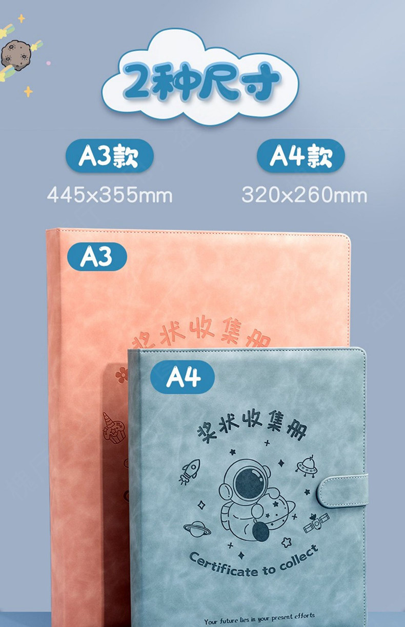 A4 Leather Award Certificate Collection Book for Boys, Elementary School Student Award Organizer, A3 Large Award Certificate Collection Book for Girls, Award Storage Book, Folder for Document Organization, Children's Artwork Storage
