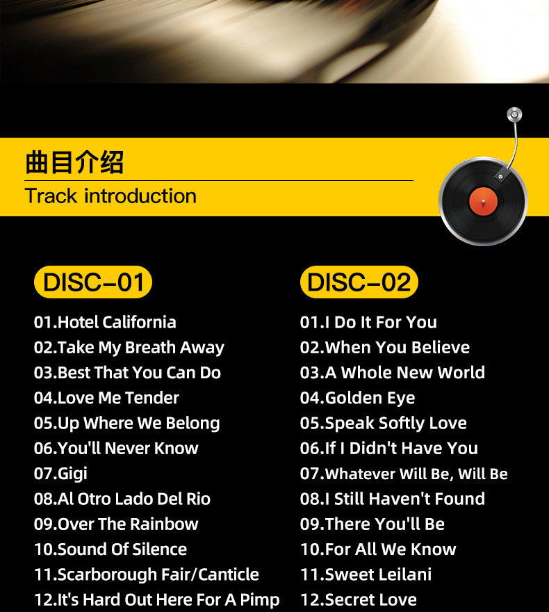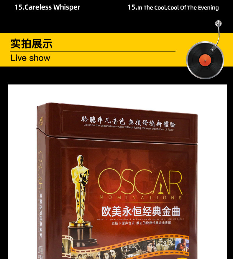 Oscar-Winning Movie Soundtracks, Classic English Songs from Europe and America, Vinyl Lossless Car Cd Discs
