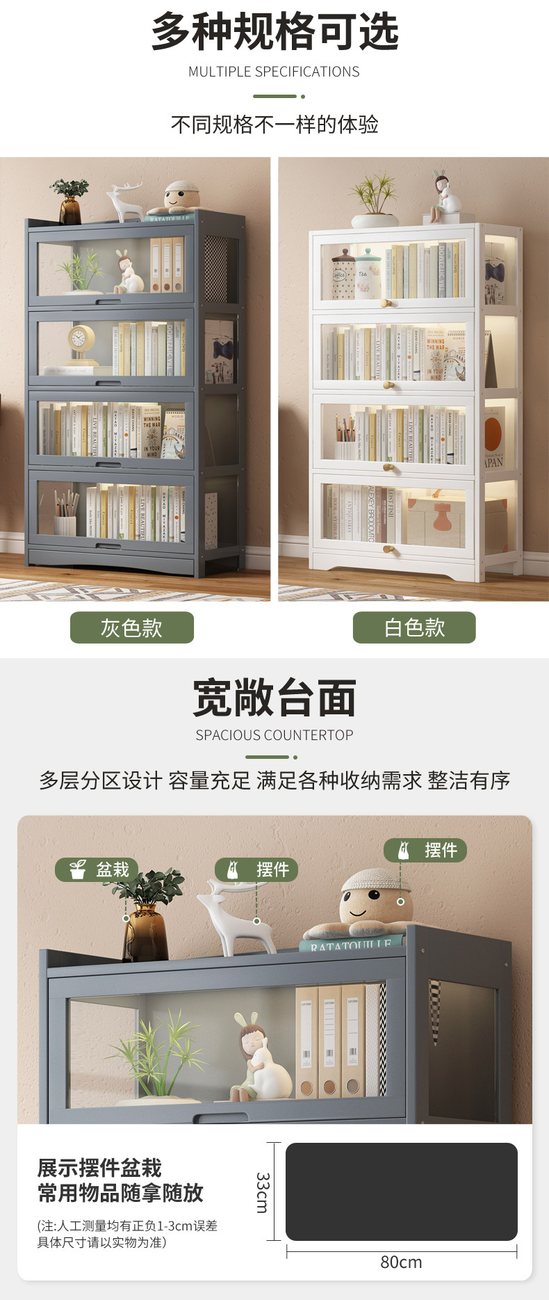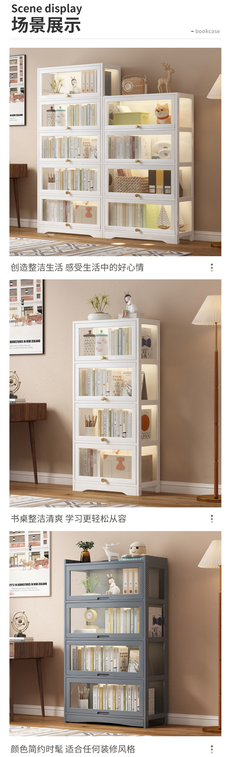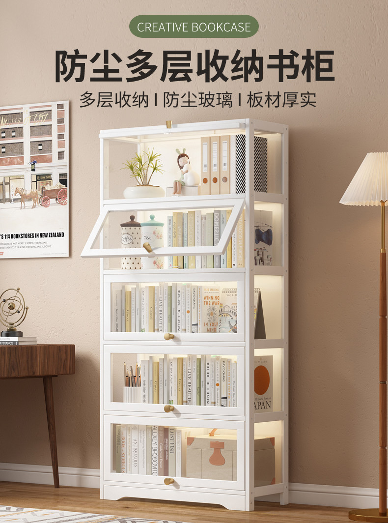 Integrated Bay Window Bookshelf with Glass Door Display Cabinet, Floor-Standing Storage Cabinet, Office Grid Cabinet