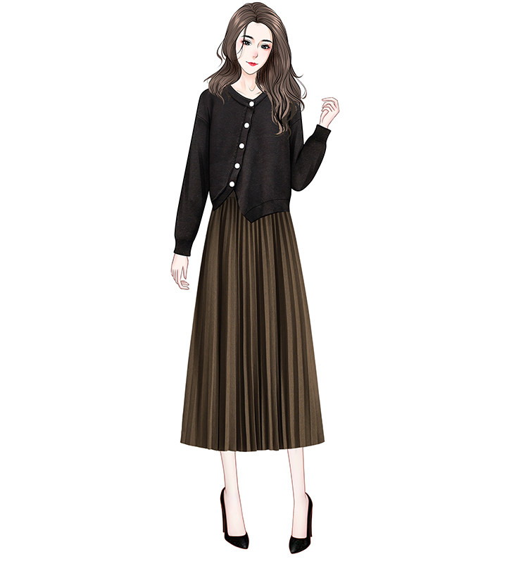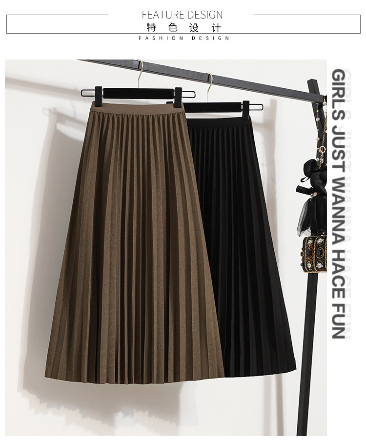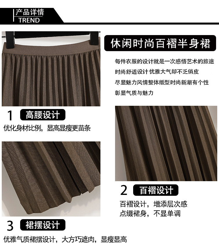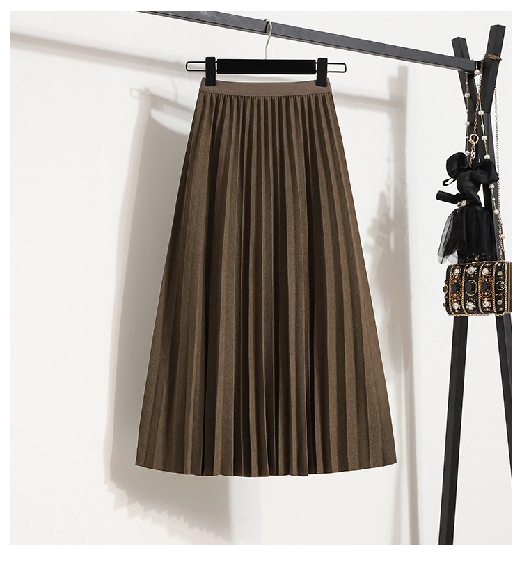 Huge and beautiful coffee-colored long skirt and skirt for women in spring and autumn, popular super hot plus size fat mm slimming A-line pleated skirt