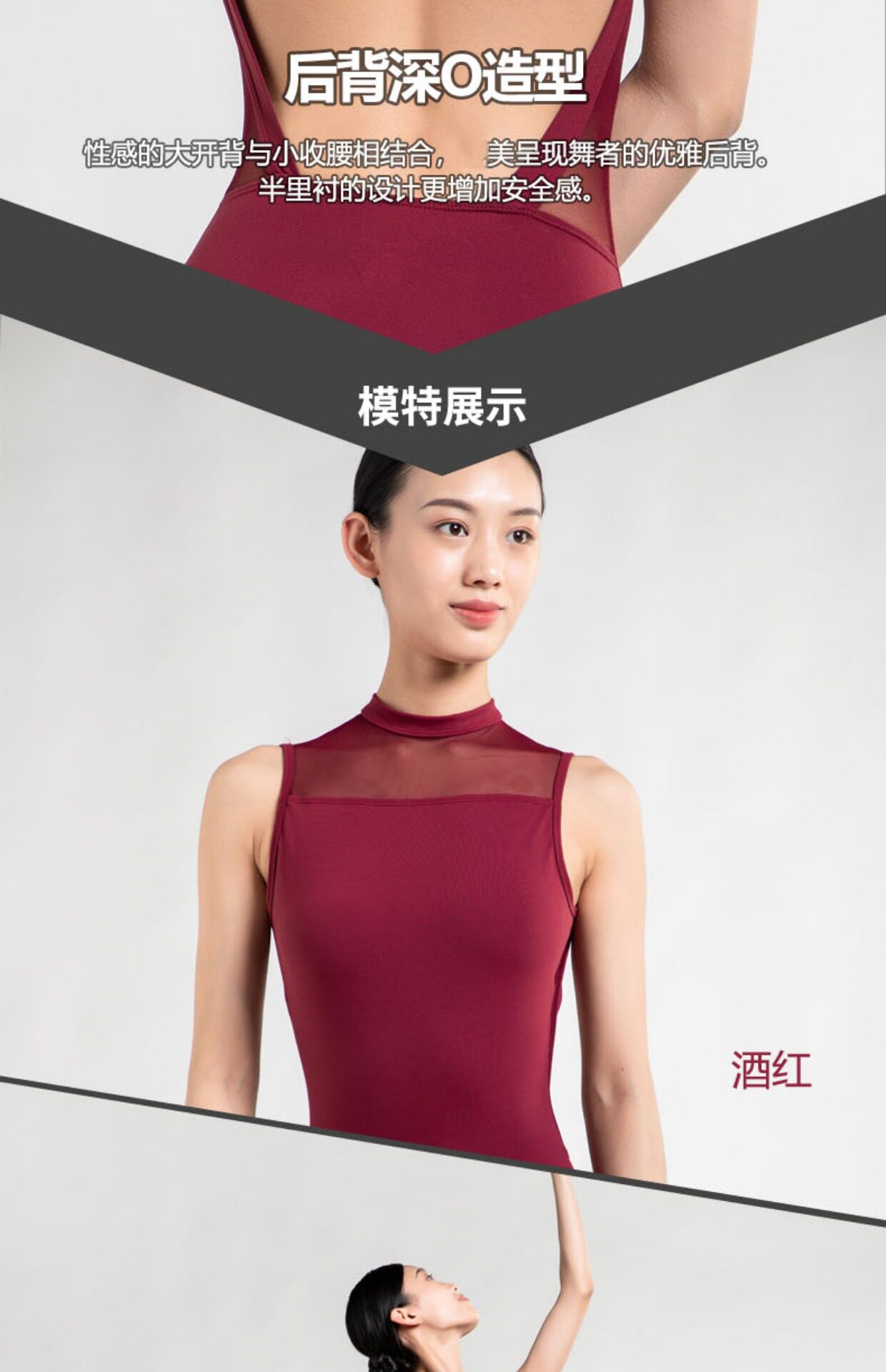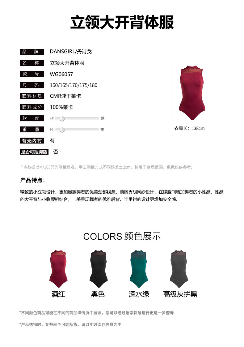 Danshige Dance Uniform for Female Candidates Taking the Art Exam, Featuring a Stand-Up Collar, Open Back, One-Piece Ballet Slimming Practice Outfit, Gymnastics Suit