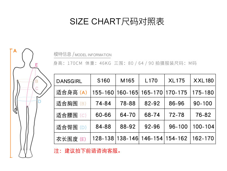 China (cm) 160-165/84-86 165-170 / 88-90 167-172 / 92-96 168-173 / 98-102 170-176 / 106-110