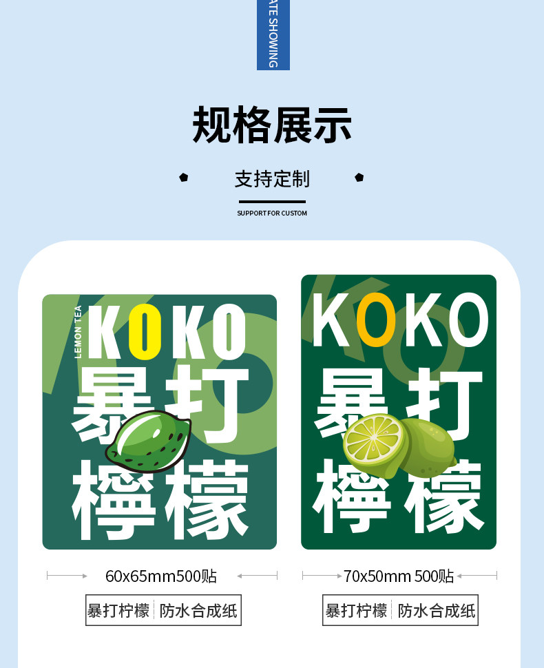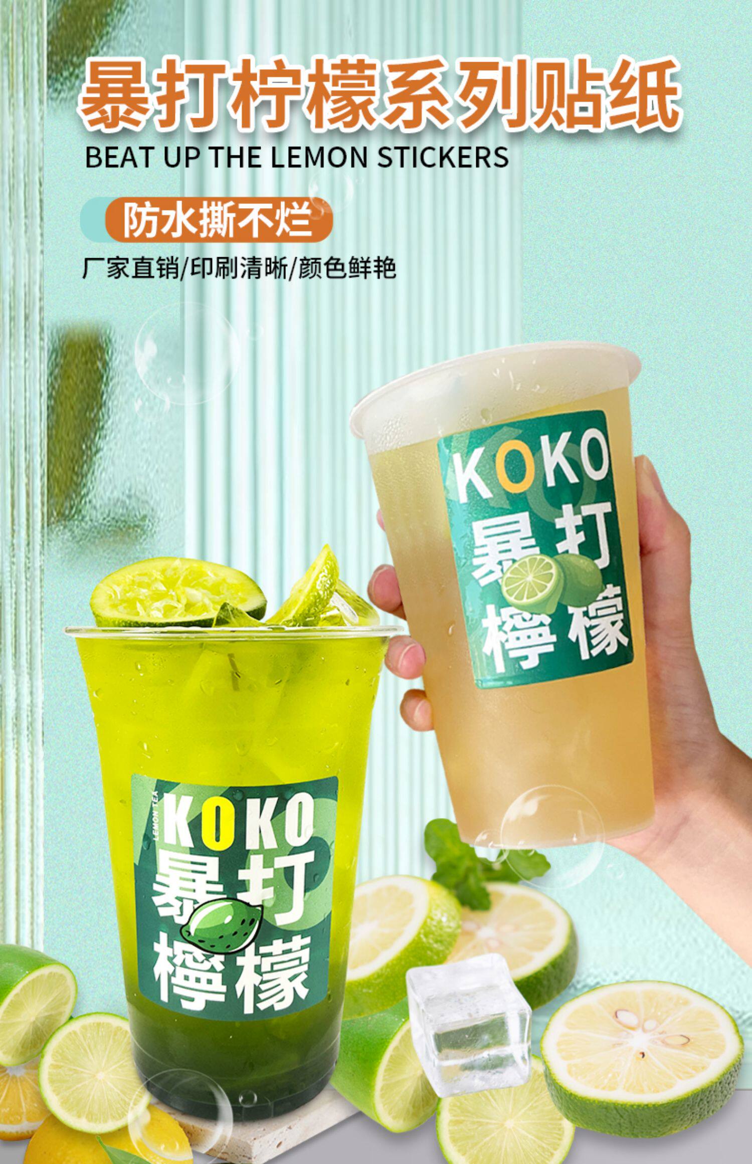 Koko Lemon Label Handcrafted Lemon Tea Sticker Trendy Fruit Tea Cup Sticker Cold Drink Waterproof Non-Tearable Beverage Seal Sticker Milk Tea Peach Fruit Bucket