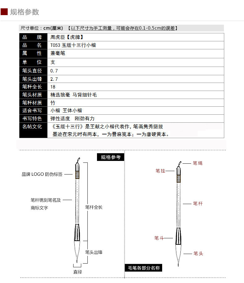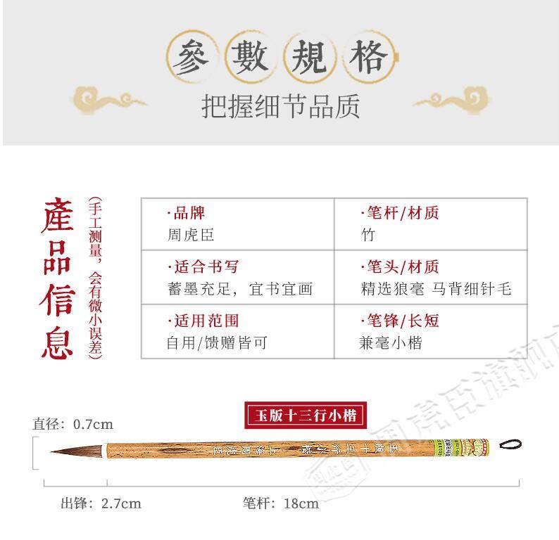 Zhou Huchen's Professional-Grade Brush with a Mix of Goat and Horse Hair, Specially Designed for Wang-Style Calligraphy in Small Regular Script, Suitable for Beginners