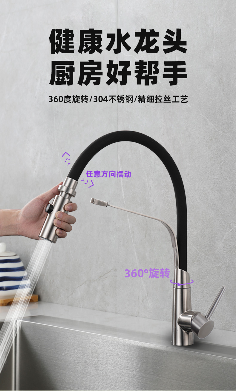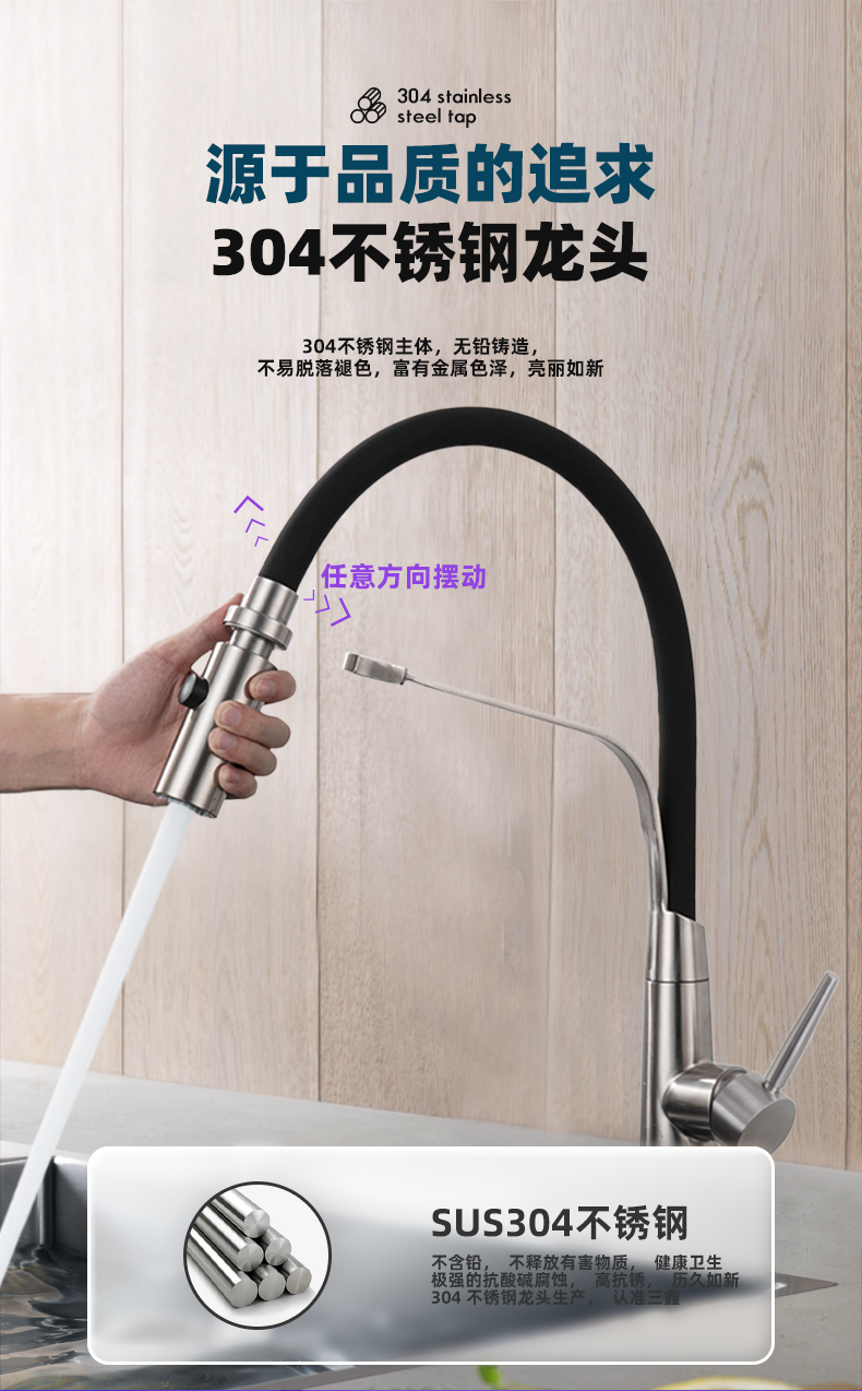 304 Stainless Steel Hot and Cold Bracket Universal Rotating Faucet Kitchen Sink Bathroom Dual-Mode Water Outlet Faucet
