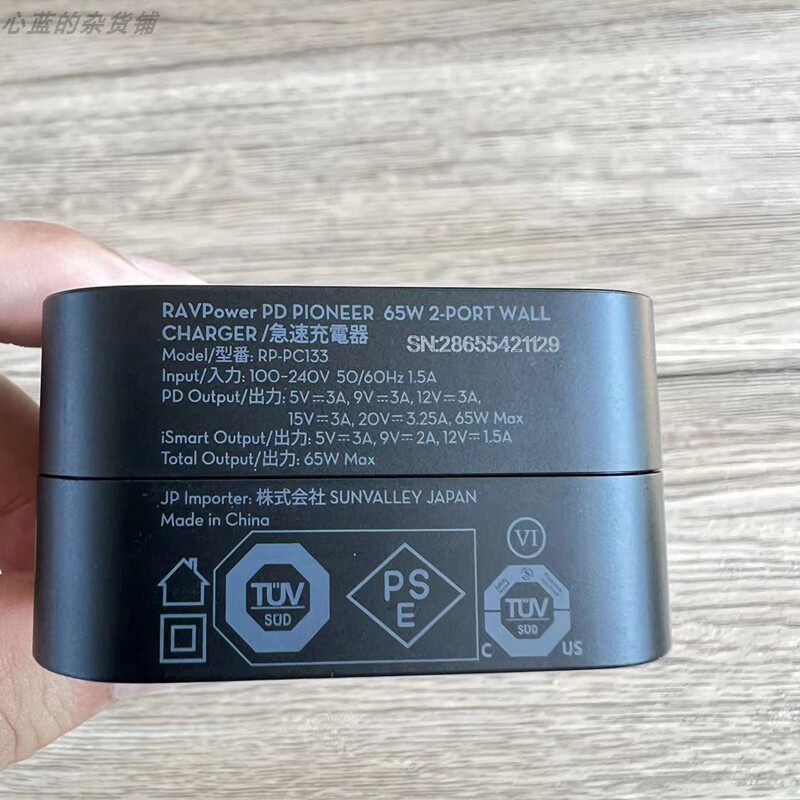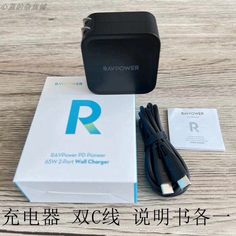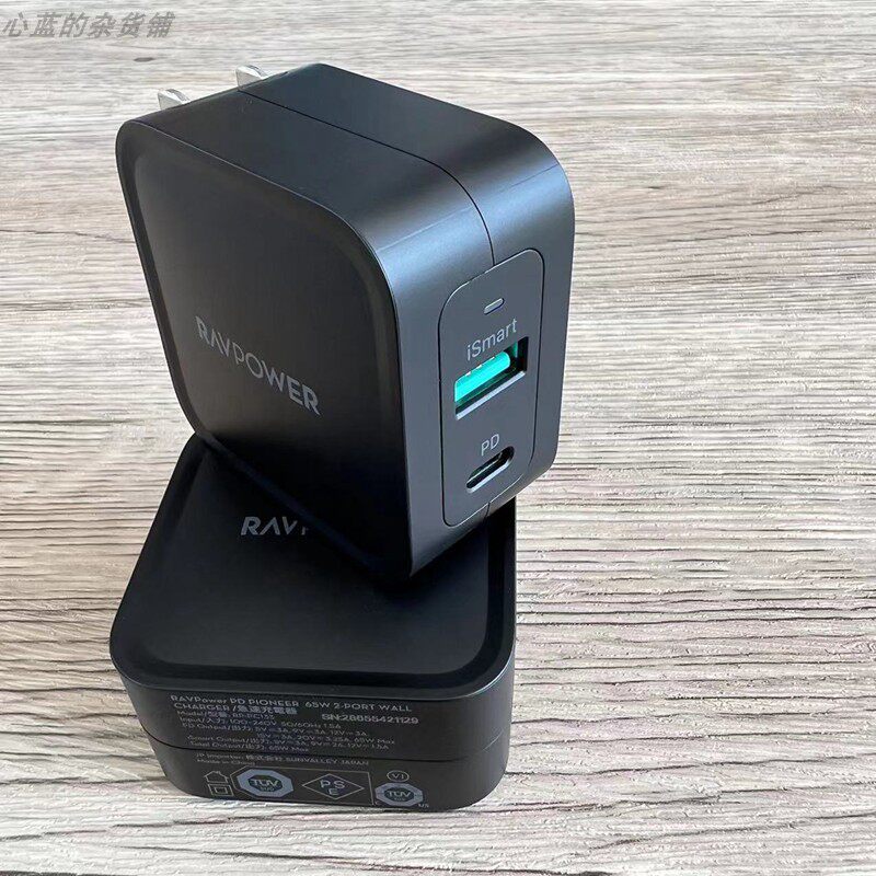 RAVPOWER gallium nitride 65W dual-port PD fast charging head 1A1C suitable for Apple mobile phones, macbook notebooks