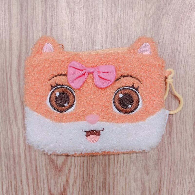 Three Squirrels Cartoon Plush Coin Purse Cute Card Holder Plush Crossbody Bag Phone Bag Portable Makeup and Lipstick Bag