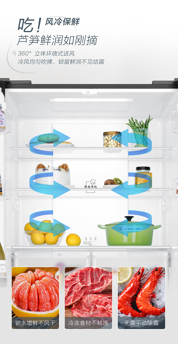 Series Air Cooling Variable Frequency Cross Double Door Refrigerator