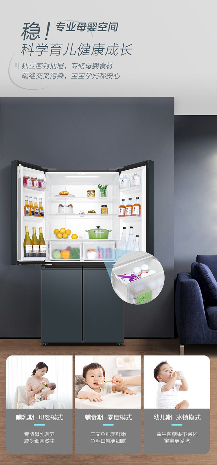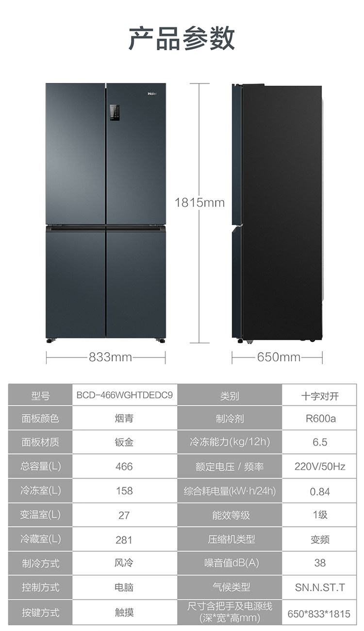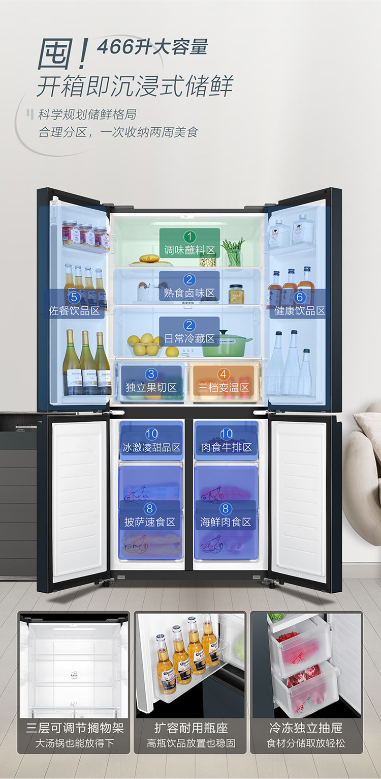 Haier Refrigerator Bcd-466Wghtdedc9 Cross-Door Air-Cooled Frost-Free Four-Door First-Class Energy Efficiency