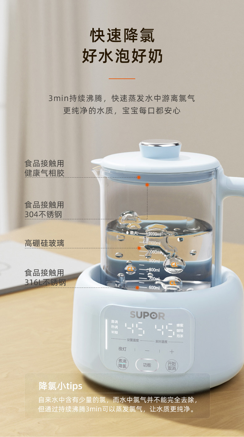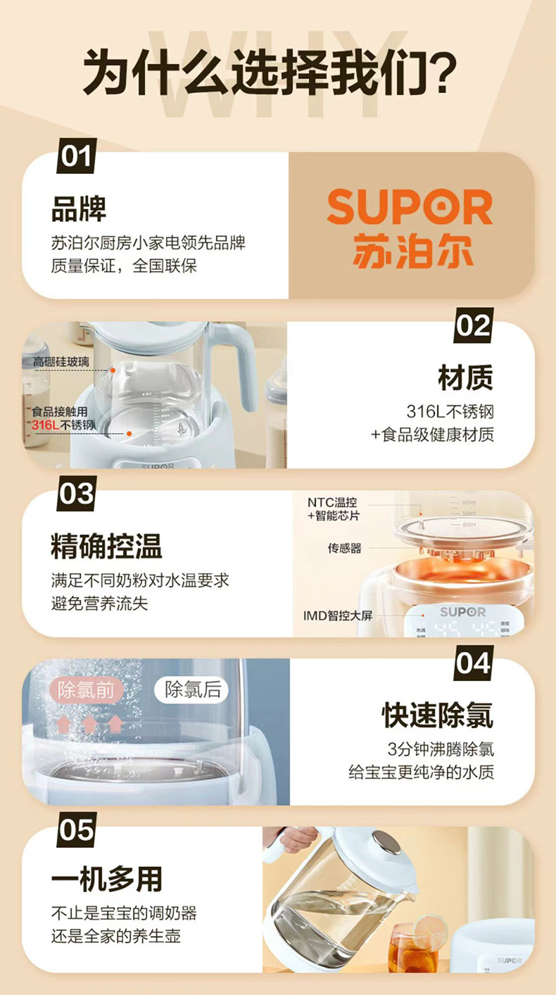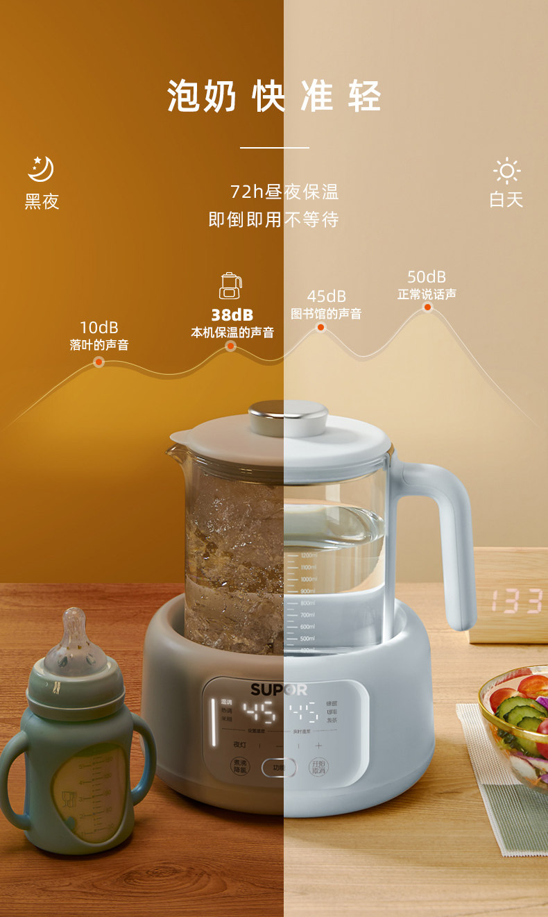 Supor Constant Temperature Electric Kettle for Baby Milk Warming and Foaming, Smart Insulation Milk Maker, Specially Designed for Babies