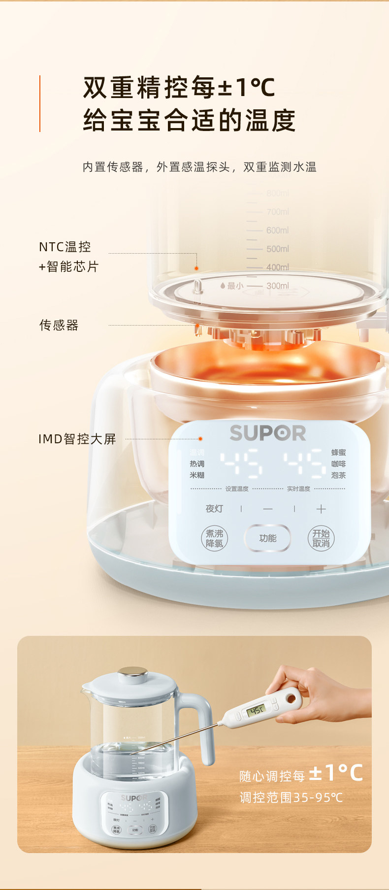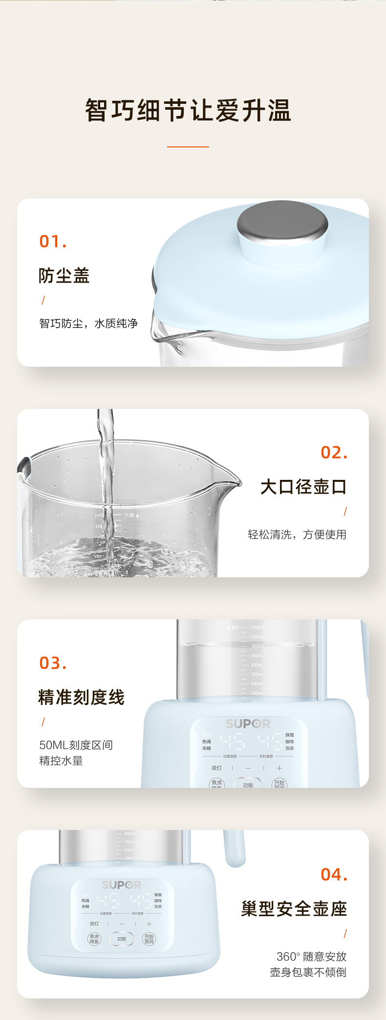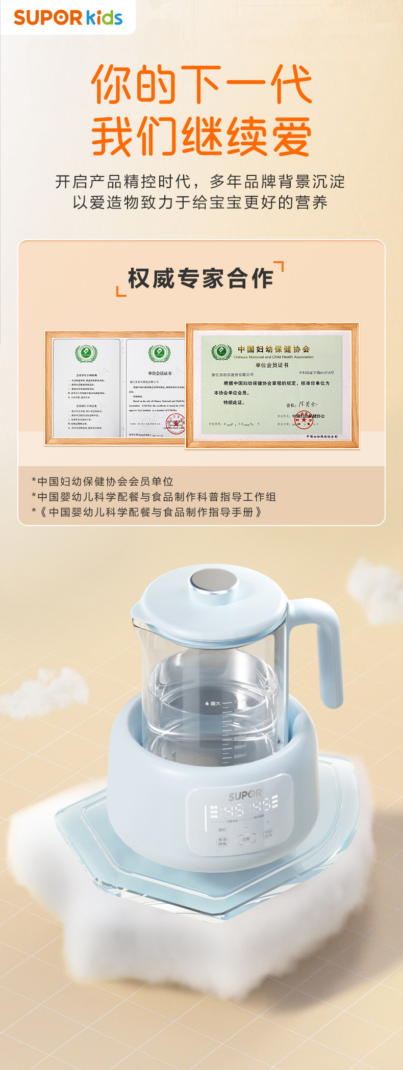 Supor Constant Temperature Electric Kettle for Baby Milk Warming and Foaming, Smart Insulation Milk Maker, Specially Designed for Babies