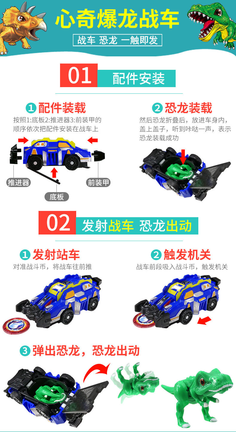 Xinqi Tyrannosaurus Battle Vehicle 2 Toy Novelty Explosive Dragon Gyro Battle Vehicle Transforming Dinosaur Tyrannosaurus Rex Transforming Mecha 3 for Boys