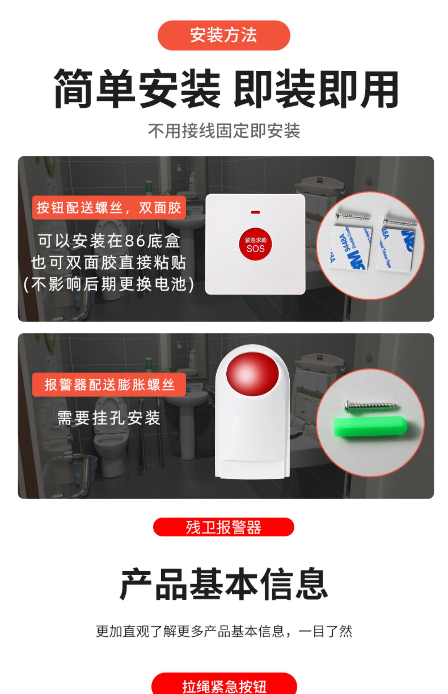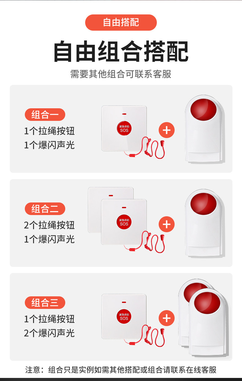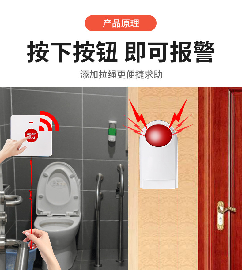 Disabled Restroom Emergency Alarm, Barrier-Free Public Restroom Wireless Emergency Alarm, Disabled and Elderly Sound and Light Alarm Button