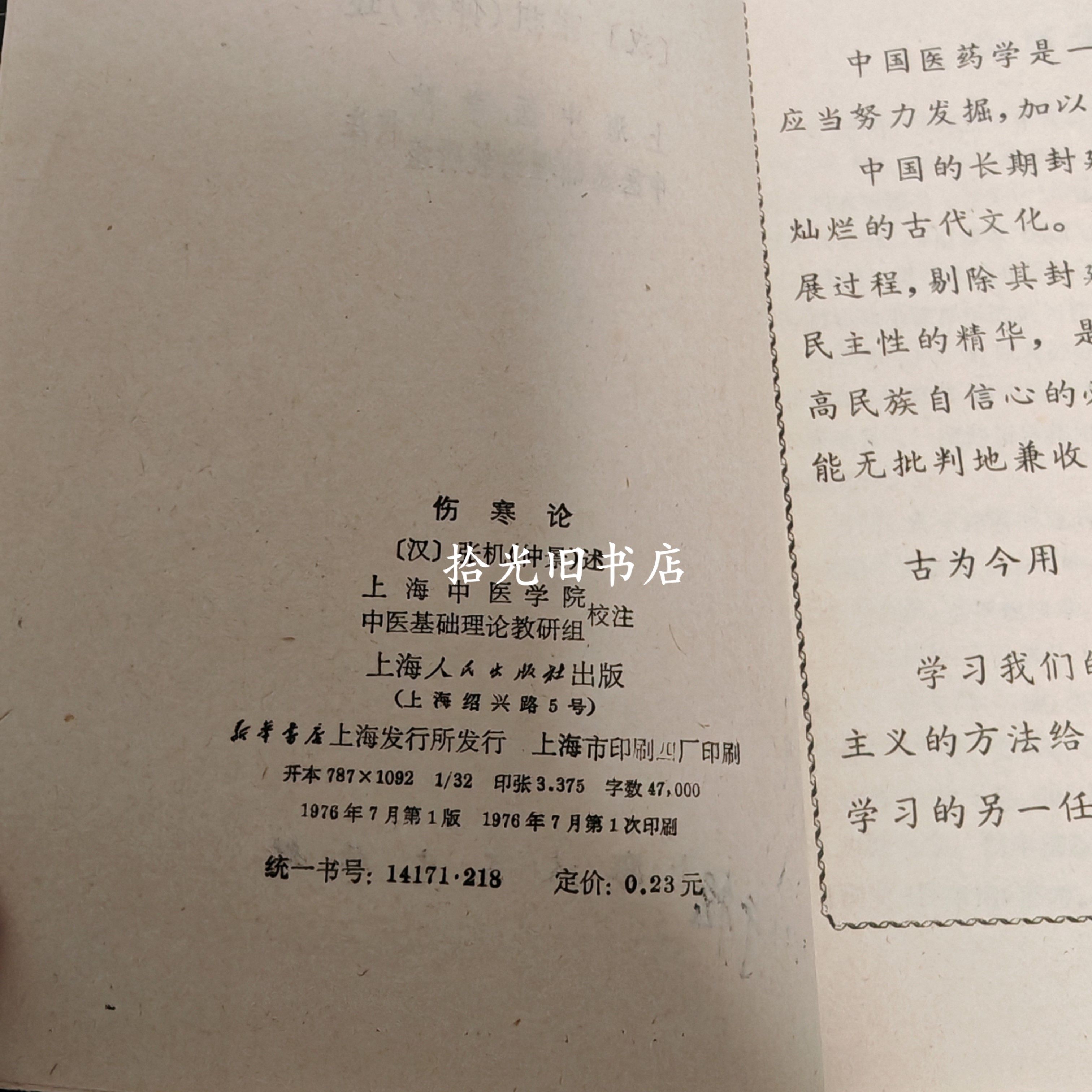 Genuine original Treatise on Febrile Diseases, Zhang Zhongjing's 1976 Traditional Chinese Medicine Treatise on Febrile Diseases and Miscellaneous Diseases, old book published by Shanghai People