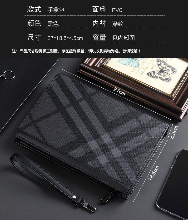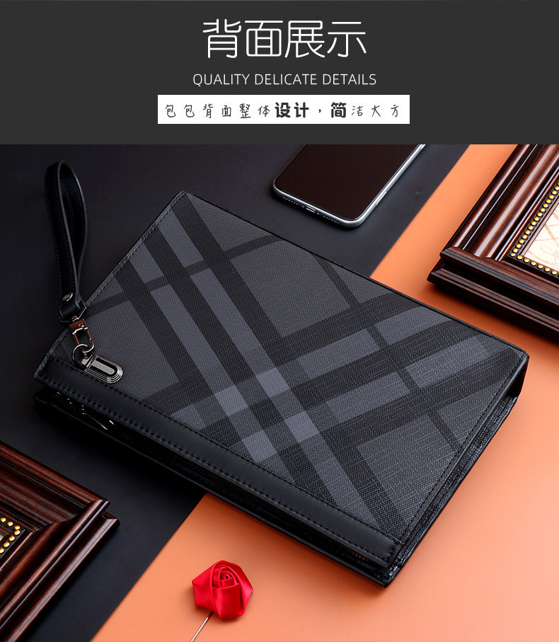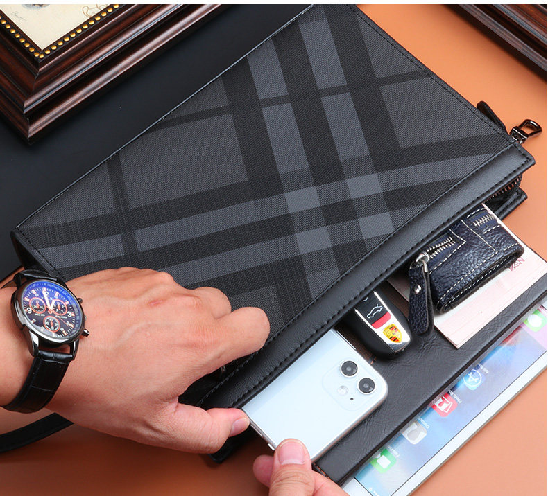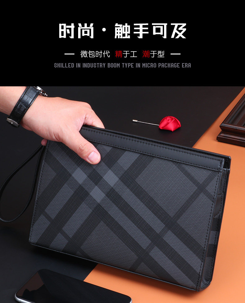 Handbag men's clutch bag business casual clutch bag men's handbag new luxury fashion trendy plaid large capacity