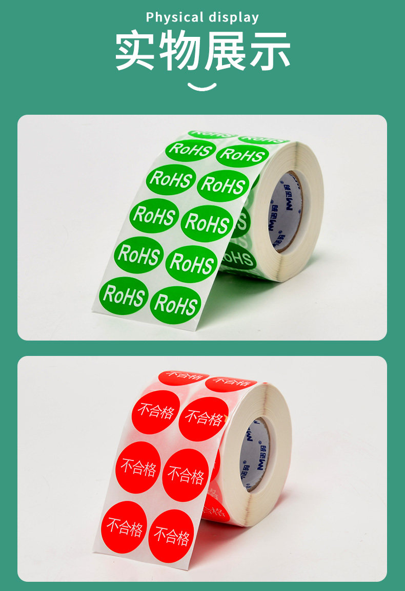 Rohs Environmental Product Marking Green Certificate Label Paper Universal Sticker Red Non-Compliant Qc Pass Defective Product Measurement Inspection Quality Control Equipment Instrument Iqc Qualified Return Adhesive