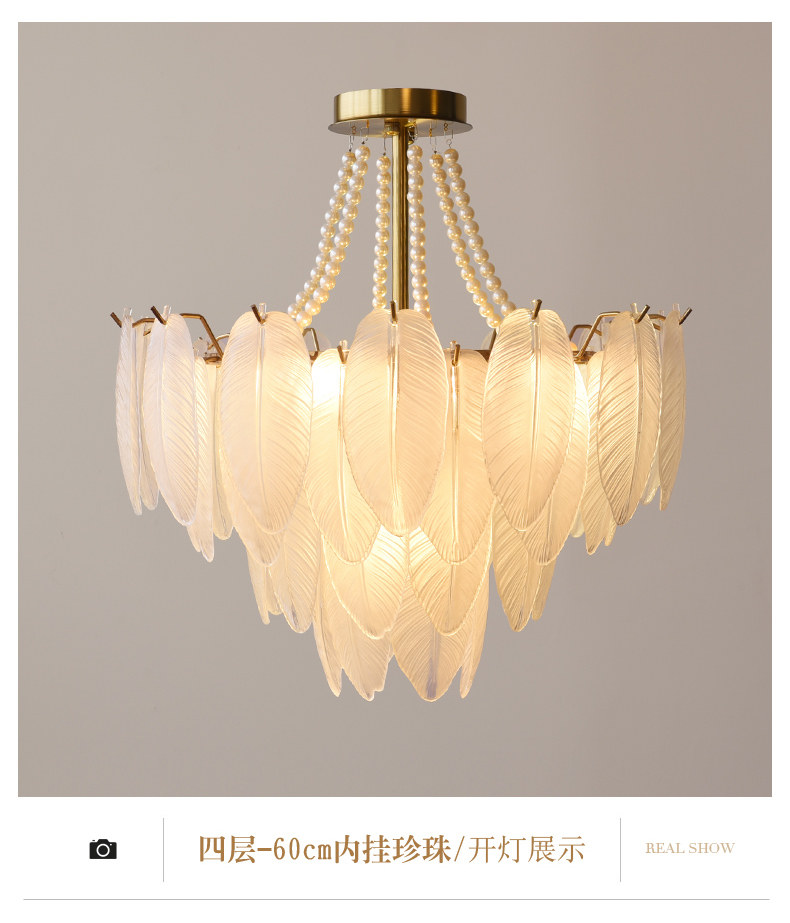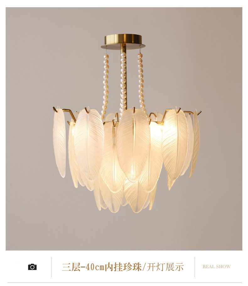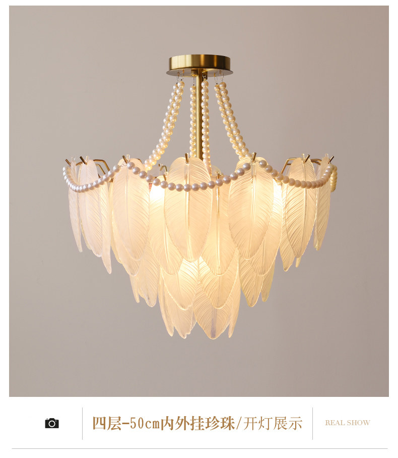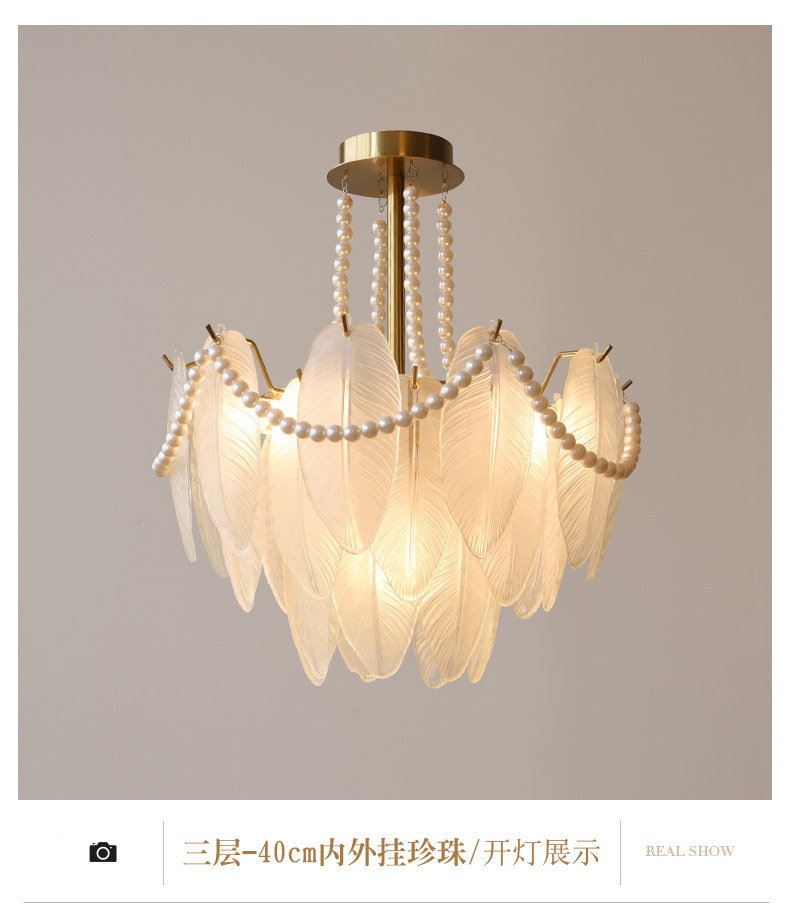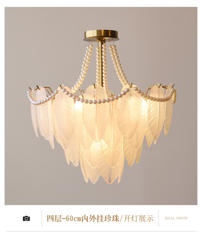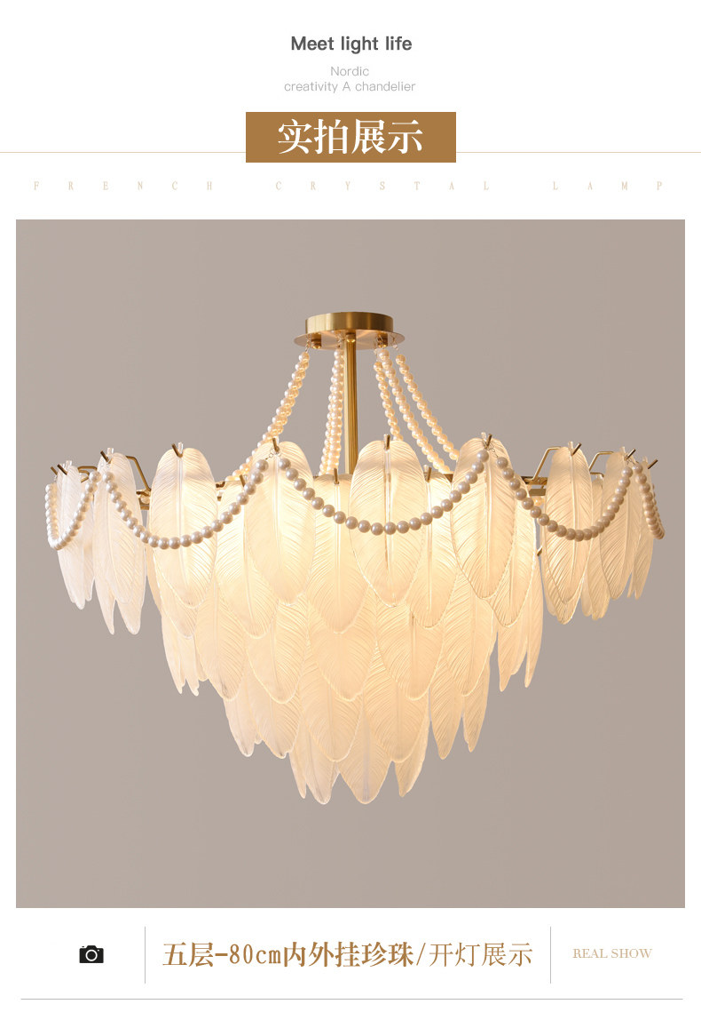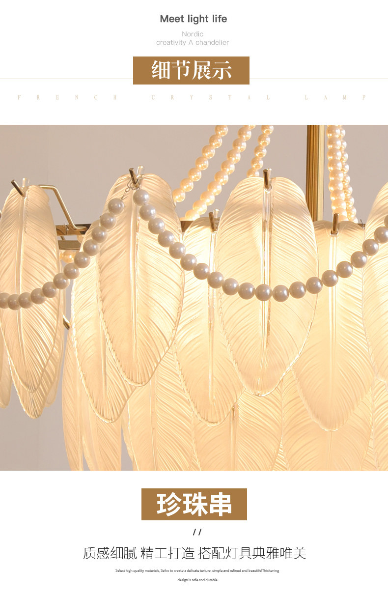 French-Style Living Room Lamp, Pearl Feather, Light Luxury Crystal, Simple Modern Lighting Fixtures, Romantic Master Bedroom Dining Room Chandelier