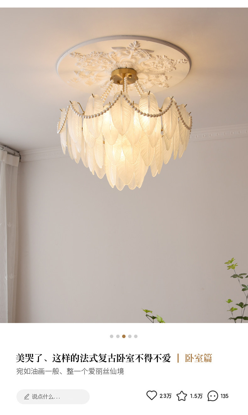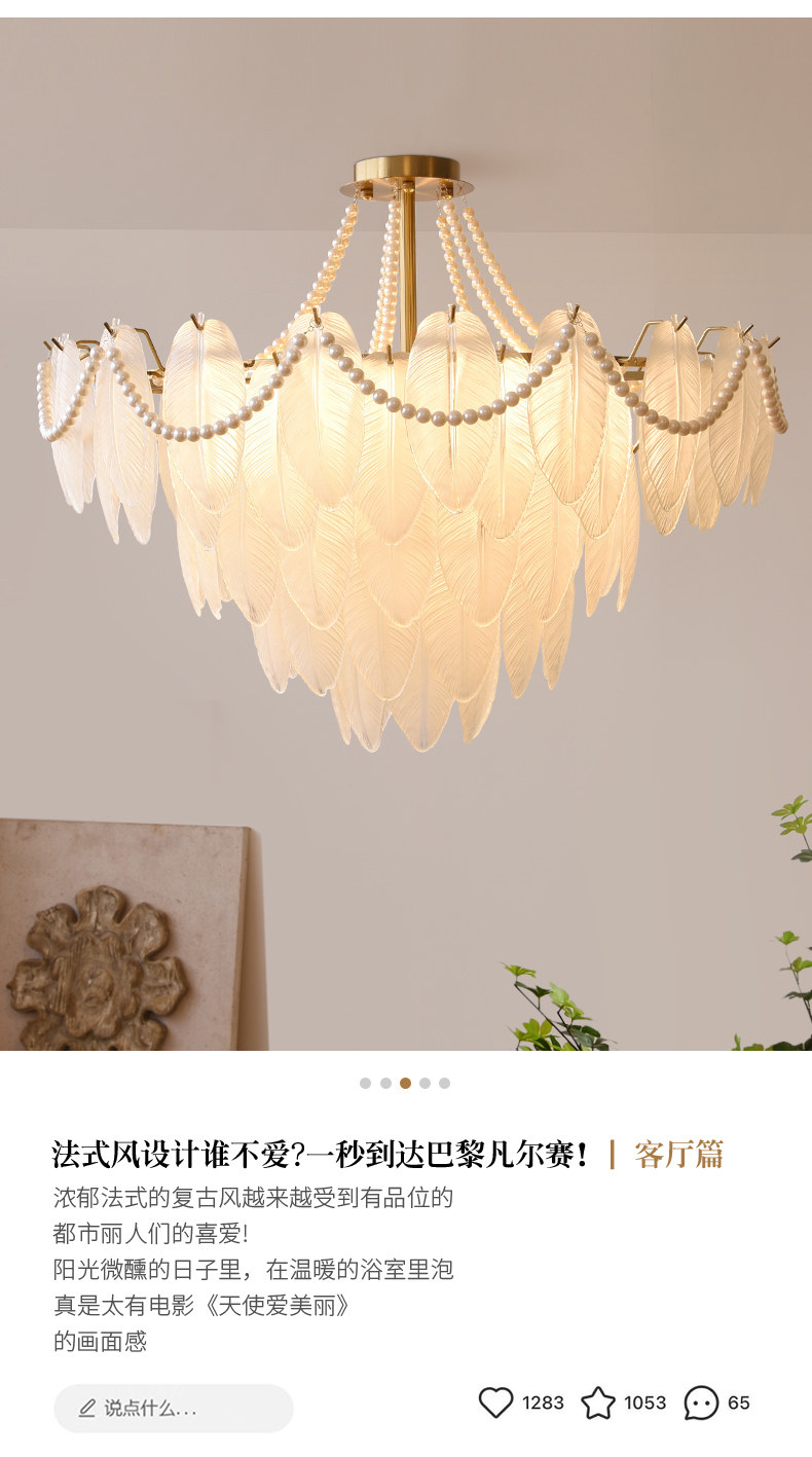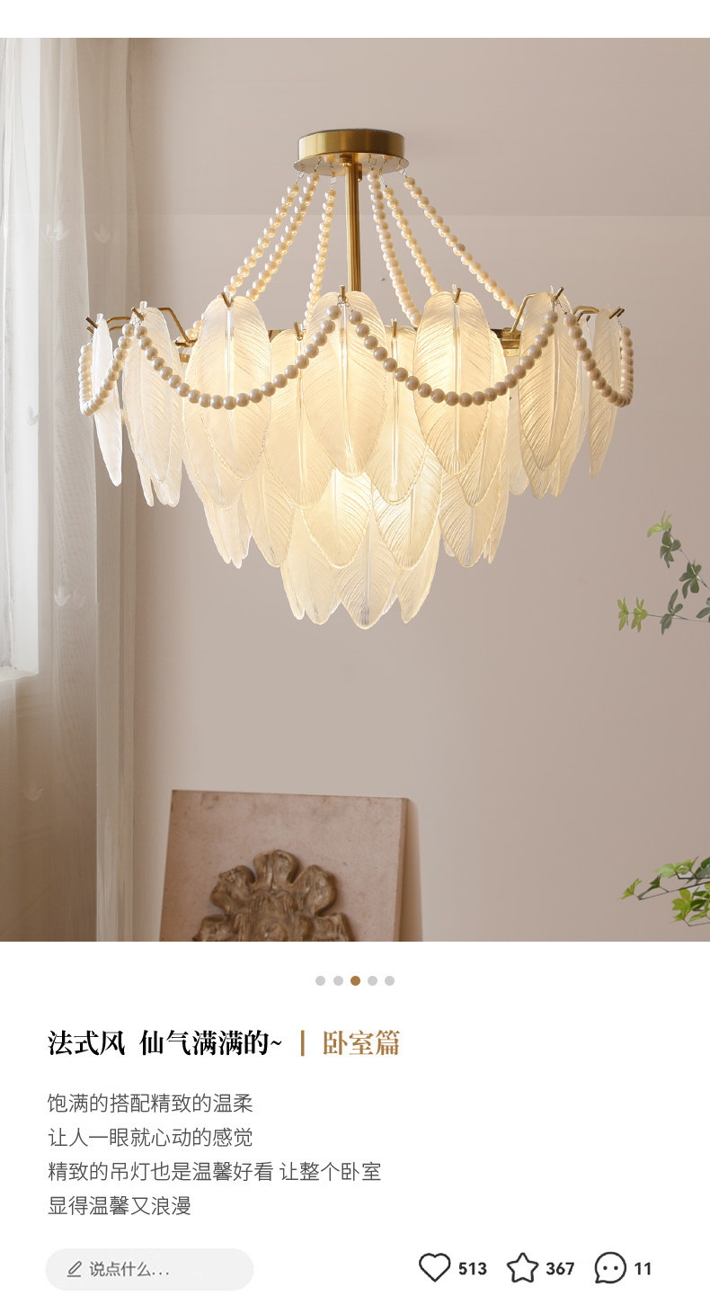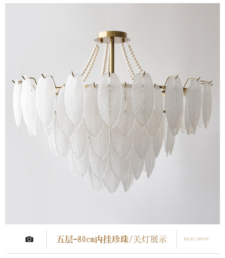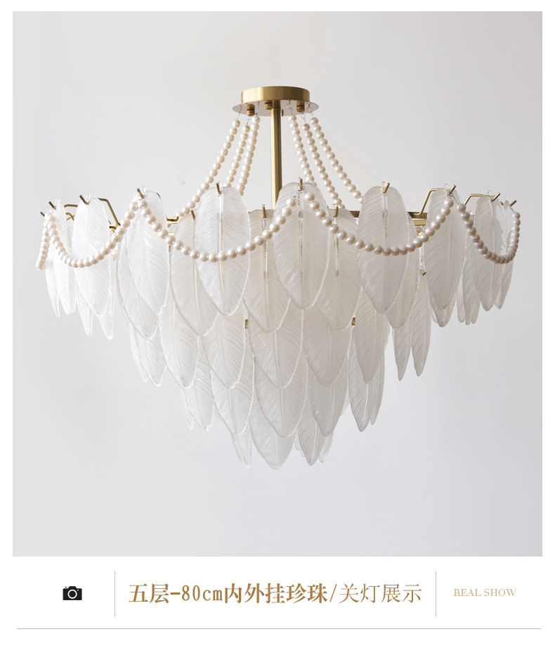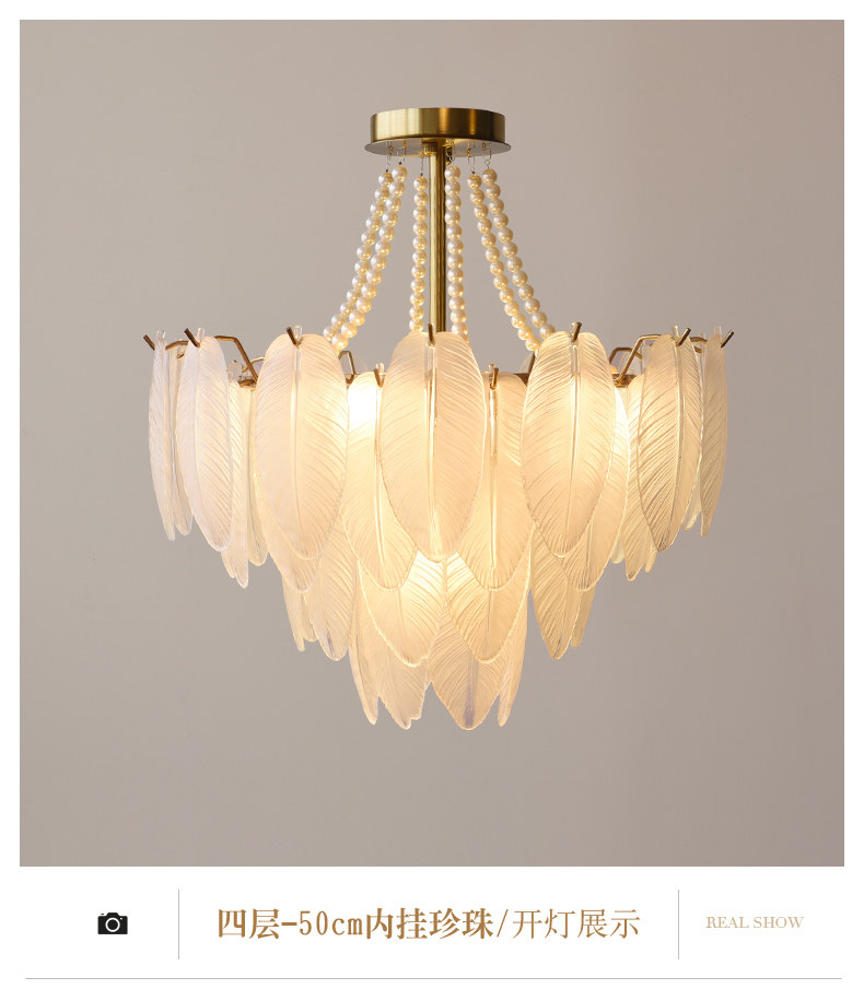 French-Style Living Room Lamp, Pearl Feather, Light Luxury Crystal, Simple Modern Lighting Fixtures, Romantic Master Bedroom Dining Room Chandelier